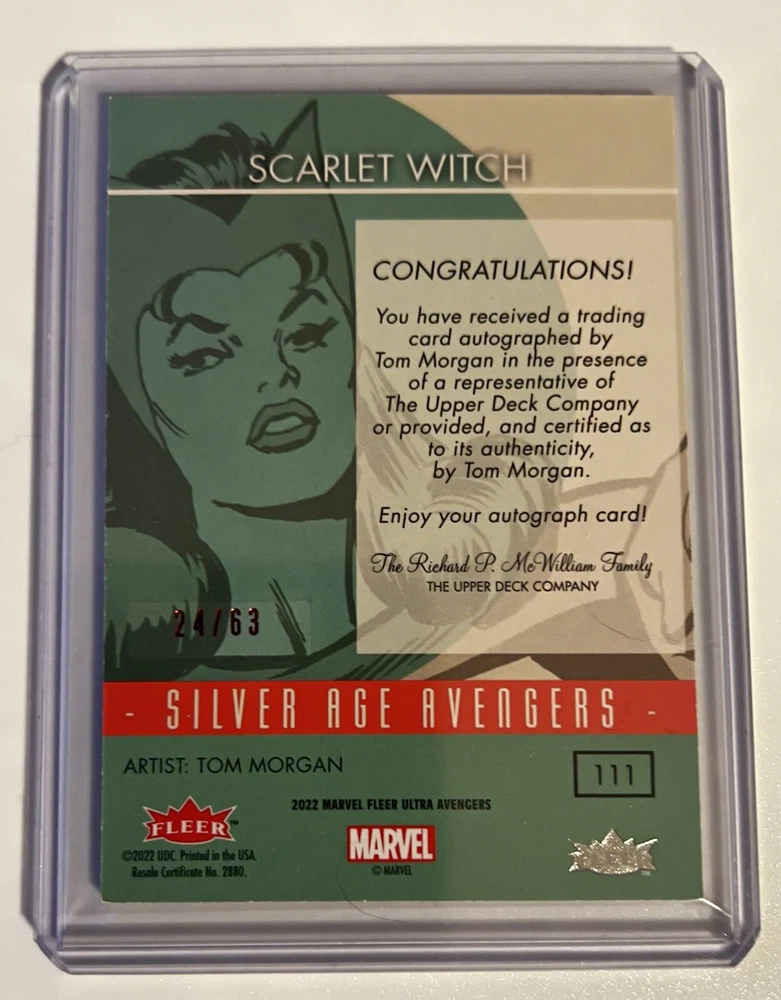 2022 Marvel Ultra Avengers Scarlet Witch Auto Signed Tom Morgan ✍️ONLY 63 MADE. Condition is Ungraded. Shipped with USPS Ground Advantage.
