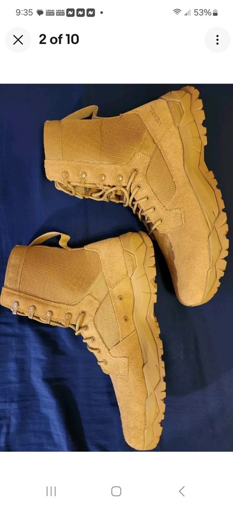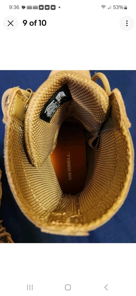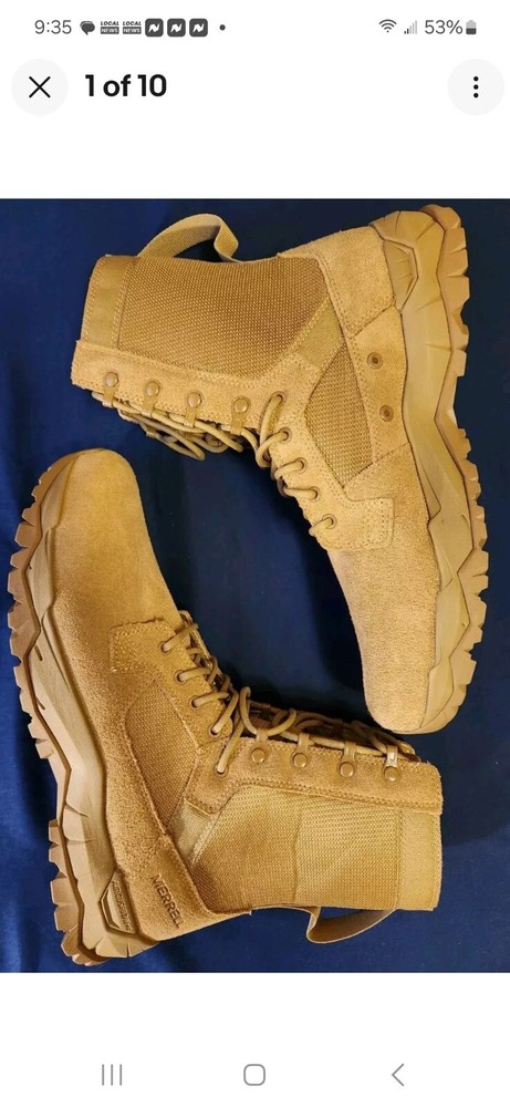 100% Cotton Origin Imported Sole material Rubber Shaft circumference 68.58 centimeters About this item NOTE: UNISEX SIZING RUNS AS MEN'S SIZING. WOMEN SHOULD SELECT A SIZE AND HALF SMALLER THAN THE MEN'S SIZE (Ex.: Unisex Size 7 = Men's Size 7 & Women's Size 8.5) MATERIAL: Suede and and abrasion resistant non-wicking textile upper and breathable mesh lining COMFORT: Merrell Air Cushion Viz absorbs impact and cradles the heel for optimal stability and support MULTI-USE: Tactical boots are suitable for outdoor sports, army tactical or desert. You can wear our combat boots to work, to jungle, to hiking, to climbing, to hunting or rocky place, etc DETAILS: Traditional lace closure and Kinetic Fit Advanced removable contoured insole with enhanced heel and arch structure and integrated cushion pod for medium support Description DETAILS. Tough and dependable. On Duty or off. The MQC Tactical boot is legendary Merrell performance made especially for servicemen and women. FEATURES: - Suede and abrasion resistant non-wicking textile upper; - Breathable mesh lining; - Traditional lace closure; - Dark Coyote color is AR670-1 compliant; - Bellows tongue keeps out debris; - Medial venting for breathability; - Kinetic Fit Advanced removable contoured insole with enhanced heel and arch structure and integrated cushion pod for medium support; - Merrell Air Cushion Viz absorbs impact and cradles the heel for optimal stability and support; - Molded nylon arch shank for midfoot support and flexibility; - Merrell M Select GRIP rubber tunes each outsole with durable traction that grips when and where you need it; - 4mm lug depth; - Shaft Height: 21.59cm; - Heel Height: 5.8cm; - Weight: 2lb / 886g