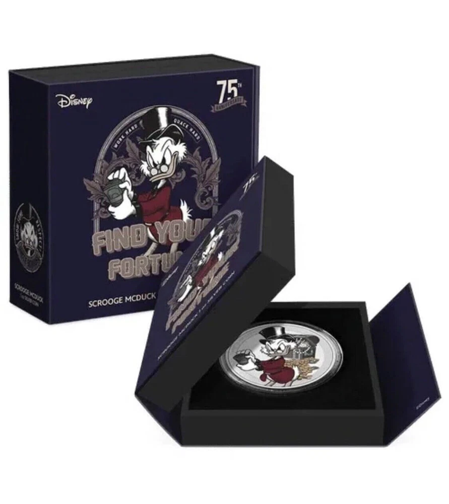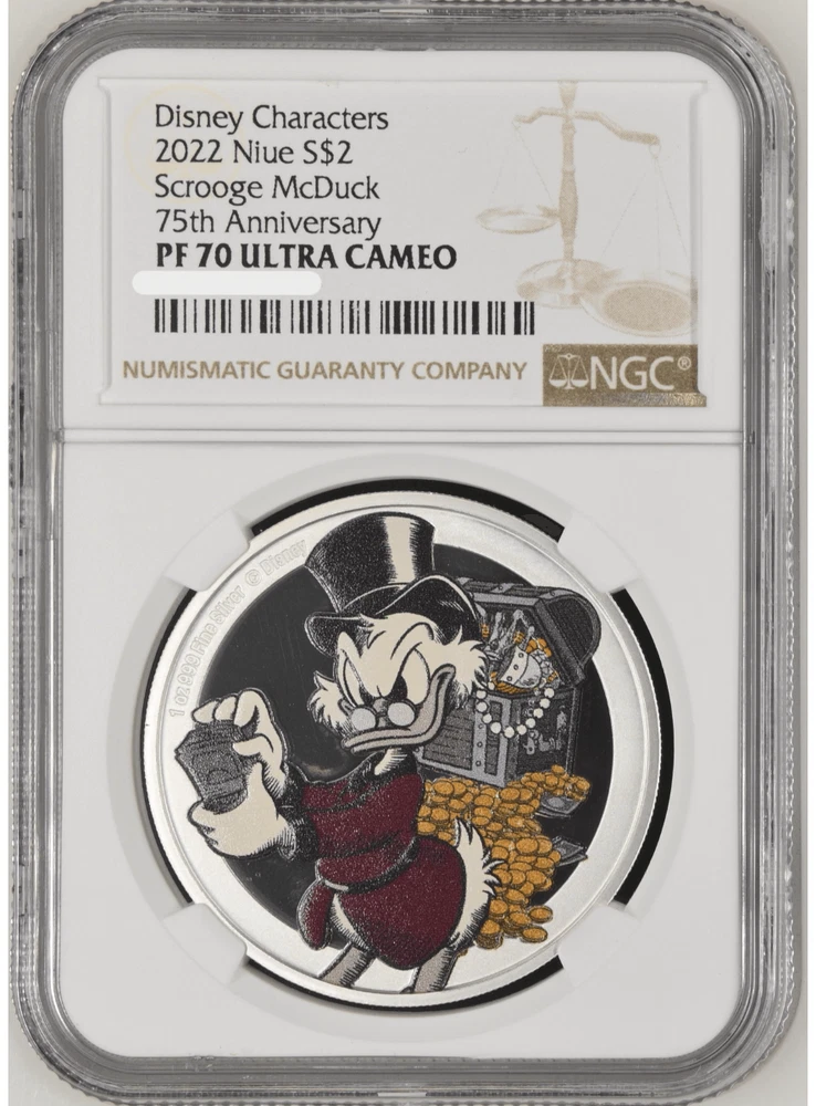FREE SHIPPING ON DOMESTIC ORDERS New releases Deals Exclusives Bullion Gold Graded Licensed Standing behind our products & our name for over a century SINCE 1915 SHOP BY CATEGORY Animal Theme Art Coins Coin Sets Comics, Notes, & Foils Deals Famous Figures & Landmarks Gold Coins GR Reserve Exclusives Graded Coins Holiday Theme Licensed Products Lunar Calendar Nature Coins Premium Bullion Rare Certificate Numbers Shaped Coins Warriors & Gods Other PARTNERS & AFFILIATIONS STORE NEWSLETTER Add us to your Favorites and receive exclusive emails about new items and special promotions! Sign up 2022 Niue Disney Scrooge McDuck 1 oz Silver Coin NGC PF 70 UCAM Product Description Making his first appearance in the 1947 comic book story, ‘Christmas on Bear Mountain’, Disney’s Scrooge McDuck celebrates his 75th anniversary! Officially licensed, this impressive 40mm diameter, 1 oz pure silver coin, showcases Scrooge McDuck in full colour. He is seen wearing his stately attire and holding his beloved money, with a full treasure chest and coins scattered behind him. This is offset wonderfully against the mirror-finish background and frosted border. Some slight relief has also been added for a 3D effect. To confirm the coin as legal tender, the effigy of Queen Elizabeth ll has been engraved on the obverse. • Officially licensed Disney collectible coin. • 1 oz pure silver coin to celebrate the 75th anniversary of Disney’s Scrooge McDuck. • The design features Scrooge McDuck in color, surrounded by money. This is offset by a stunning mirror-finish background and frosted border. • Impressive coin measures a substantial 40mm. • Presented in a special edition, anniversary-themed box. • Unique anniversary memento for any Disney fan or coin collector. • Limited worldwide mintage of only 1,947 coins. Contact Shipping Payment Returns To contact our Customer Service Team, simply click the button here and our Customer Service team will be happy to assist. Domestic Shipping Options - Free shipping USPS Ground Advantage UPS Ground Saver International Shipping Options – Calculated USPS Priority Mail International UPS Worldwide Expedited UPS Worldwide Saver UPS Standard to Canada Handling time Will ship within 1 business day of receiving cleared payment. Ship From Location Attleboro, Massachusetts, 02703, United States Note to international buyers The item price and shipping charges do not include import duties, import taxes, and customs clearance fees. These charges are the buyer's responsibility. Please check with your local customs office to determine what these additional charges may be prior to bidding or purchasing an item. If your order is returned to GR Reserve due to your refusal to pay duties or taxes, or if the carrier (for example, Federal Express or UPS) was unable to deliver your order, you agree you are responsible for any return shipping fees, additional duties, or applicable taxes for returning the package back to GR Reserve. In addition, if your package is returned to GR Reserve, we will not reship your order unless and until we are paid in full for any return shipping costs, duties, taxes we have had to pay or advance for you as well as any subsequent re-ship fees back to you. Immediate payment is required upon selecting "Buy It Now" or upon checking out through the cart. We accept payment via U.S. PayPal accounts and all Major Credit Cards, Debit Cards & Google Pay. We are legally required to collect sales tax in those states and localities where we maintain a physical presence. The applicable amount of sales tax charged to an order will be calculated based on the shipment destination's state and local sales tax laws. Thank you for shopping with us on eBay! Standard Other eBay Mastercard® Earn up to 5x points when you use your eBay Mastercard®. Learn more GR Reserve’s return, refund, and exchange policy is limited to (30) business days from the date that you received your item. If you find you have received a defective item, please contact us, and include detailed photos. GR Reserve will then assess whether the product is eligible for a return, refund, or exchange. For approved exchanges, you must follow all instructions provided by us, including packaging the product appropriately. We are responsible for the cost of return domestic shipping and the risk of loss during the return shipment. Refer to eBay Return policy for more details. You are covered by the eBay Money Back Guarantee if you receive an item that is not as described in the listing. Free Shipping On all domestic order 100% SATISFACTION GUARANTEED About Feedback GR Reserve - Attleboro, MA 02703