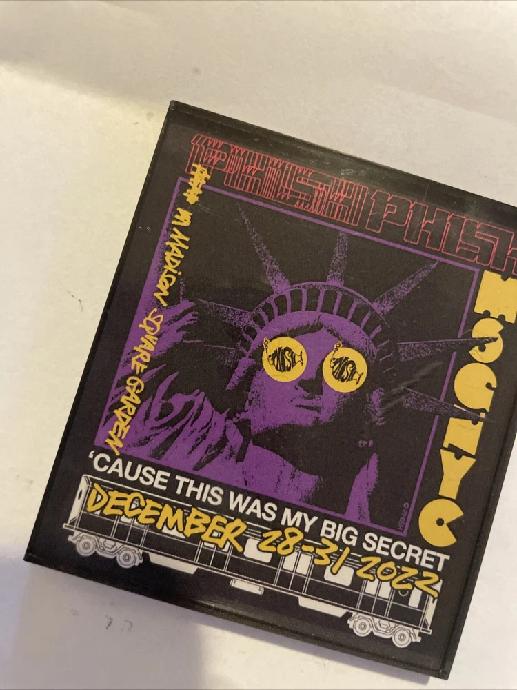 This unique magnet features a stunning statue of Liberty from the iconic Phish concert at Madison Square Garden in 2022. The magnet is a must-have for any Phish fan and collector of music memorabilia. The piece is an original reproduction, modified to capture the essence of the live performance. It is perfect for displaying on a fridge, locker, or any magnetic surface. Don't miss your chance to own a piece of Phish history with this exclusive magnet.