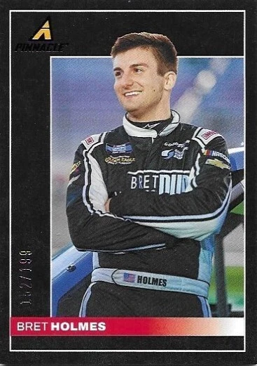 This 2022 Panini Chronicles Pinnacle Blue card features Bret Holmes and is numbered out of 199. The card is an original and a single item from the Panini Chronicles brand. It belongs to the Racing sport and is part of the Modern (1970-Now) period and the 2022 season. The card is Near Mint/Mint condition and is also serial numbered. The manufacturer is the Panini Group and the team is unknown. This item is perfect for any collector or fan of Bret Holmes and racing trading cards.