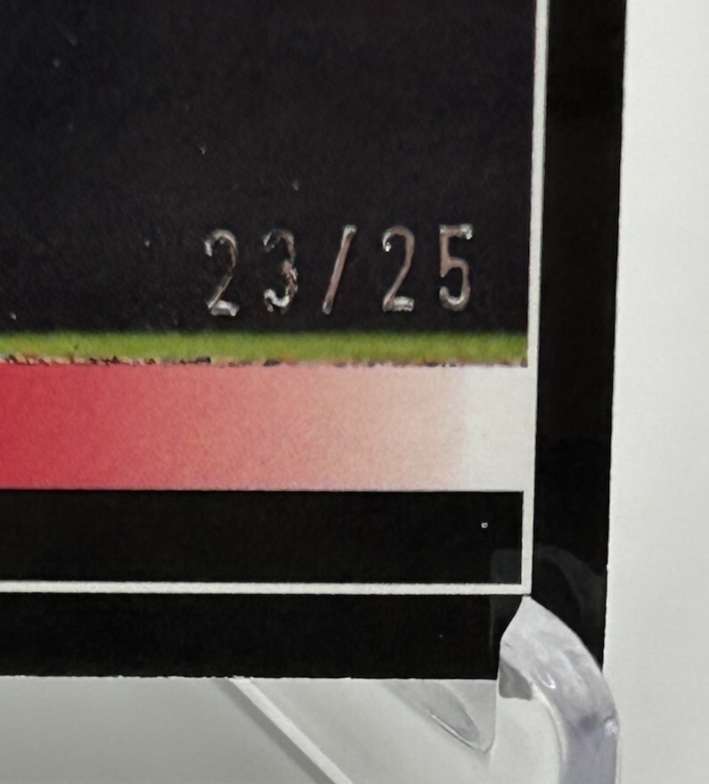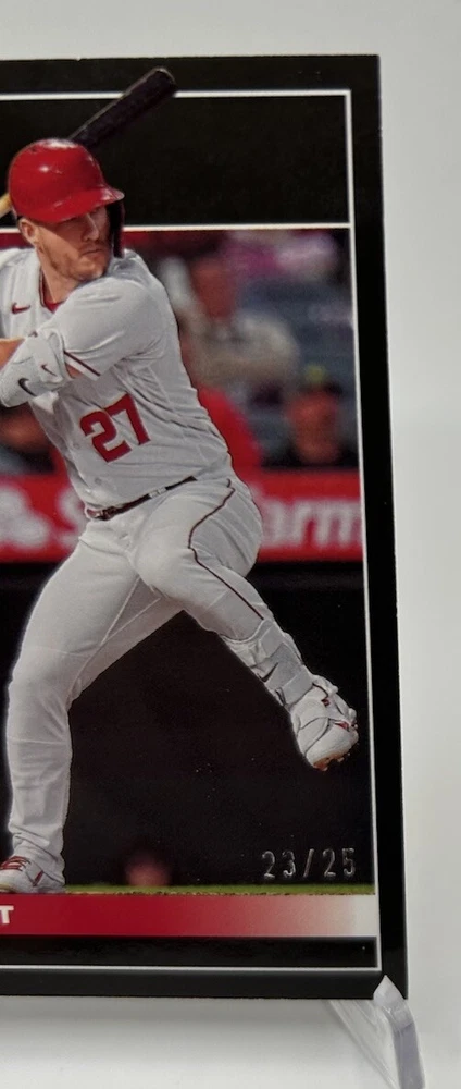Just snagged this incredible Mike Trout card! It's a super low-numbered black parallel, only 23 of 25. The condition is flawless with perfect corners and color. What an amazing chance to own such a rare piece for my collection. Absolutely thrilled!