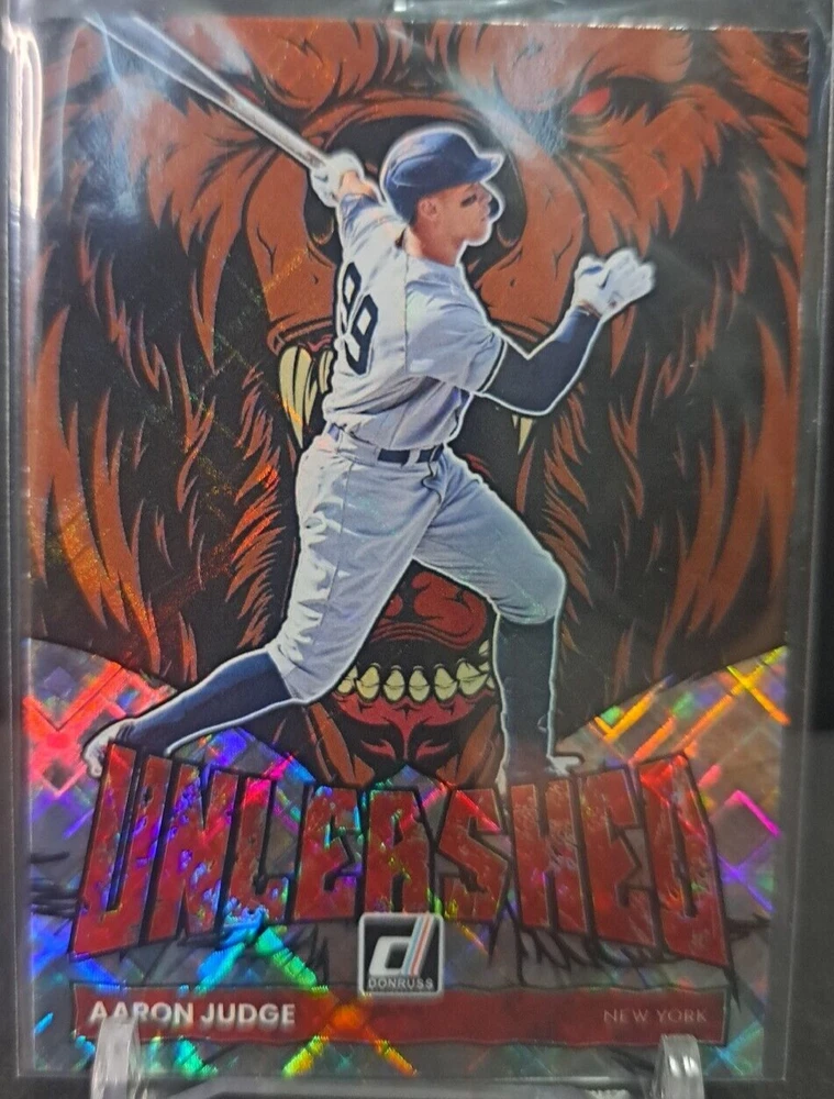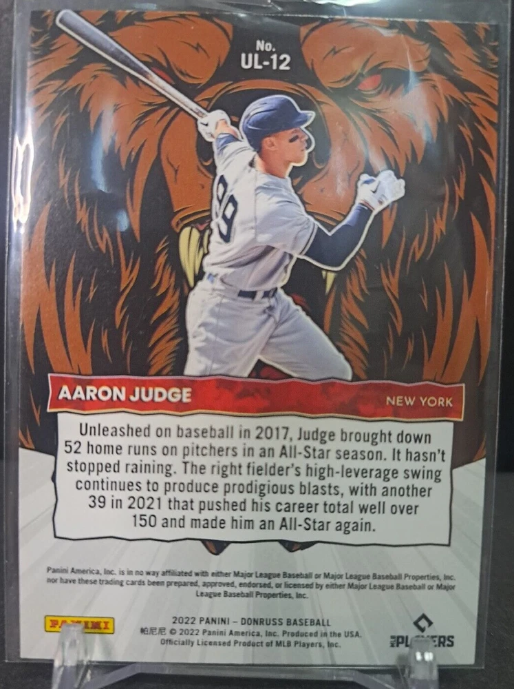This rare 2022 Panini Donruss Aaron Judge Diamond Unleashed #UL-12 trading card is a must-have for any true baseball fan. Featuring the iconic New York Yankees player in stunning detail, this card is perfect for collectors looking to add to their sports trading card collection. With its diamond-shaped design and unique attributes. It's perfect for fans of baseball, sports trading cards, and especially for fans of the New York Yankees. Add it to your collection today and feel confident in your purchase of this rare and highly sought-after card.