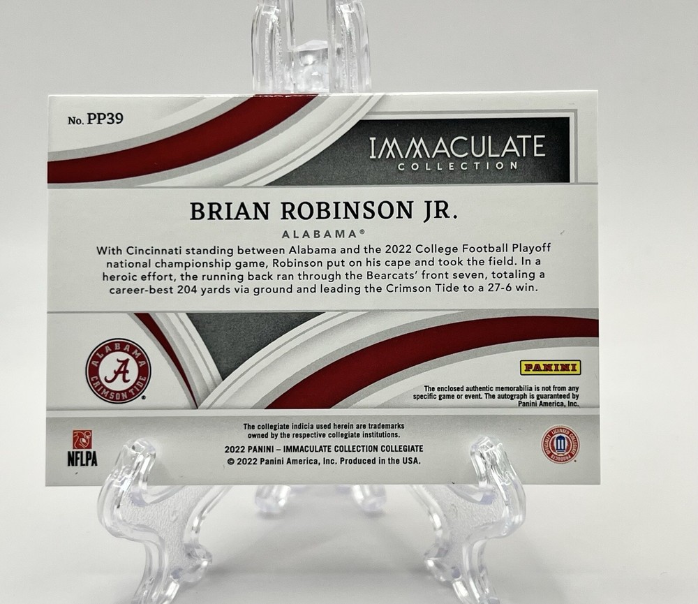 2022 Panini Immaculate Collegiate Brian Robinson Jr RPA Patch Auto /99 ALABAMA