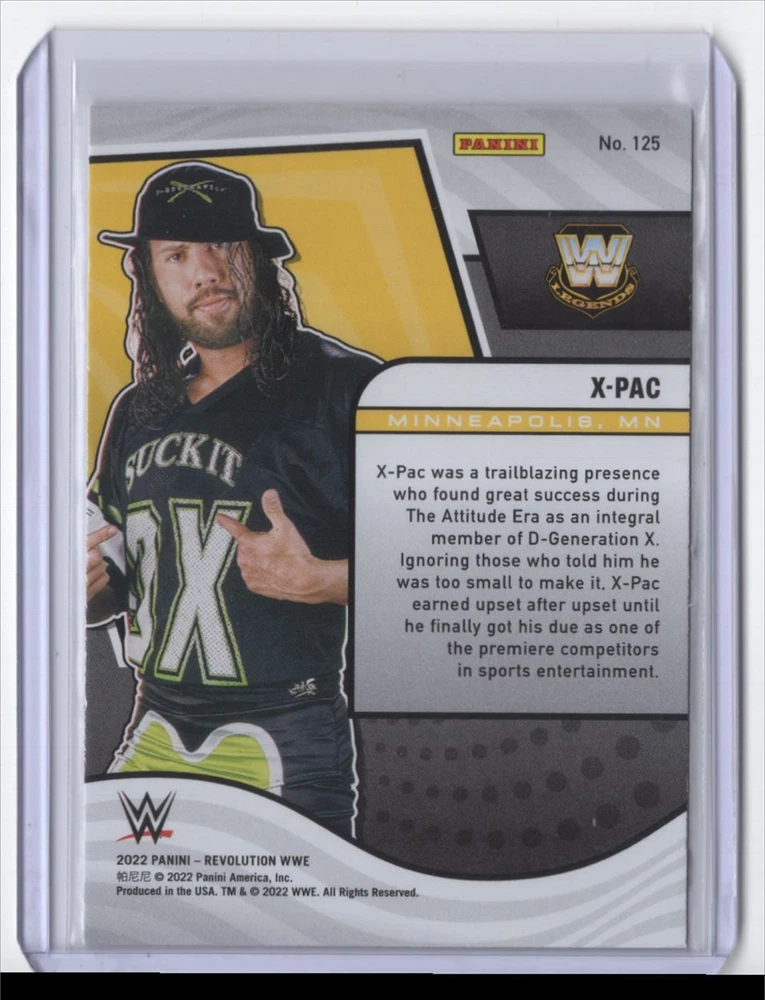 About Me Other Listings Feedback Add to Favorites Contact Me Striking Cards 901 2022 Panini Revolution WWE X-Pac #125 No stock photo / These are real scans or pictures Details Description: X-Pac Category: Wrestling Year: 2022 Product: Panini Revolution WWE Card Number: 125 Dimensions: 4" x 3" SKU: WR B0001 R01 H (48) Listing By Kronocard trading cards software v2.6.5.5