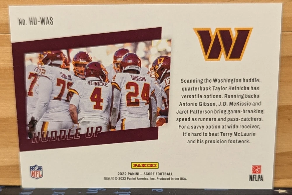 Elevate your collection with the 2022 Panini Score Huddle Up Washington Commanders #HU-ATL RED FOIL sports trading card. This card celebrates the team spirit of the Washington Commanders with its vibrant design and is part of the popular Huddle Up insert set. As a base set card, it holds a special place in the series and is a must-have for fans and collectors alike. Crafted by Panini, a trusted name in sports memorabilia, the card features the standard size and is printed in the United States. The card is RAW, but will ship in a penny sleeve and top loader to maintain its existing condition. Whether you're expanding your collection or gifting it to a die-hard football enthusiast, this card hits the mark.