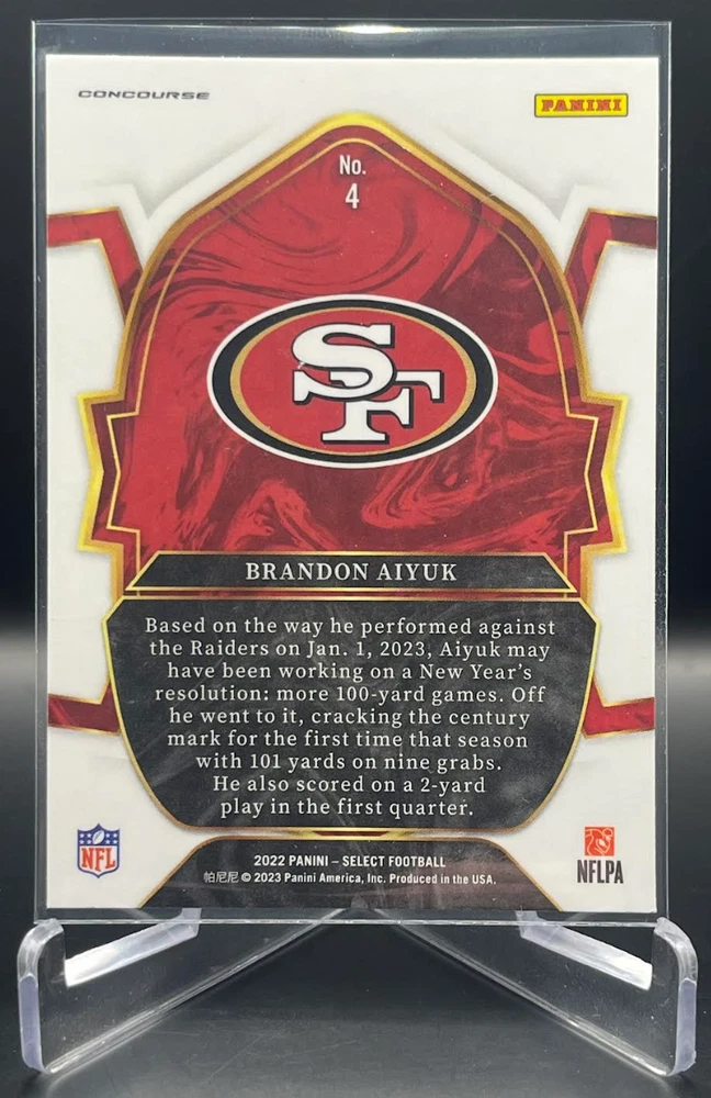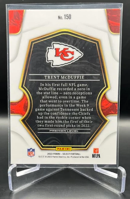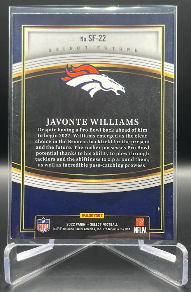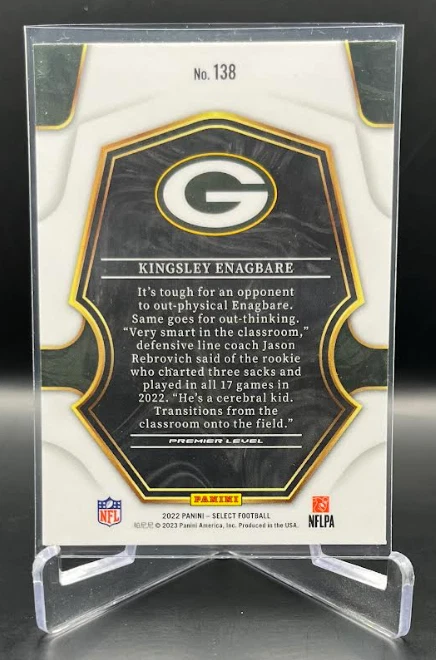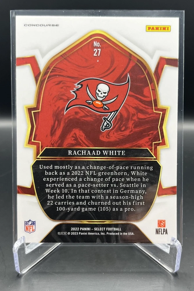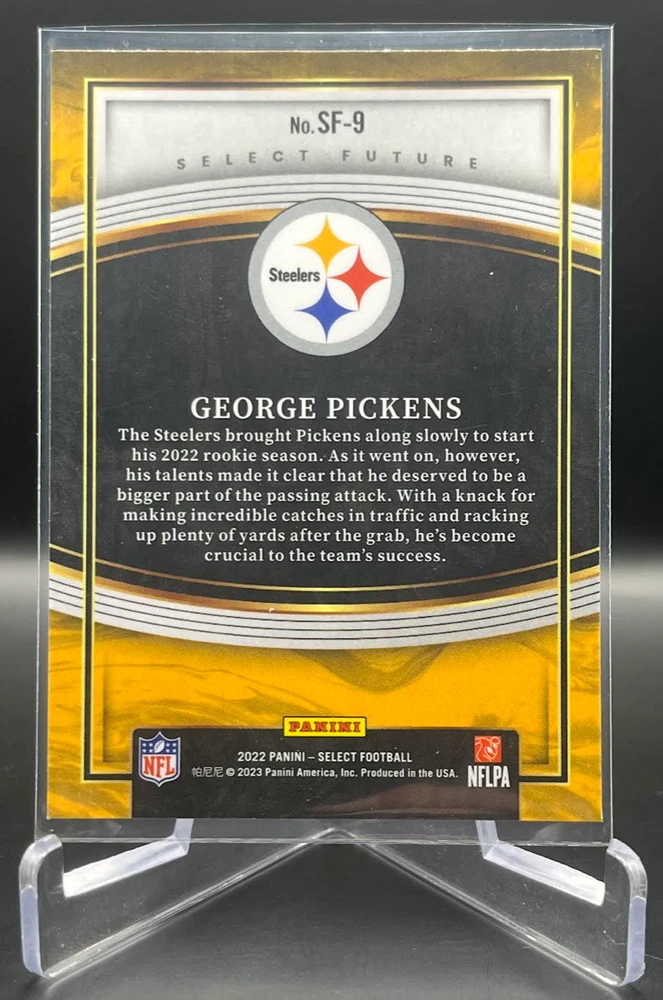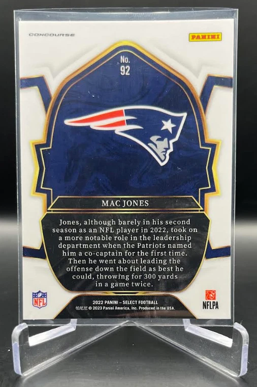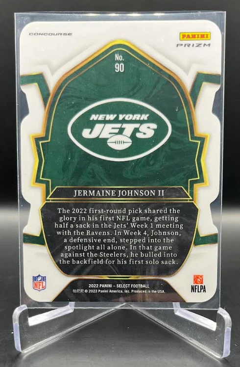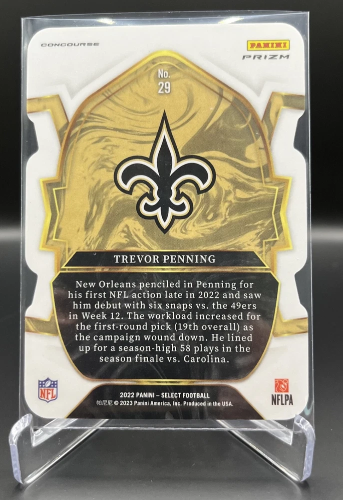 This 2022 Panini Select Football card is a must-have for any fan of the National Football League (NFL). With a variety of parallel, base set, rookie, and insert features, this card is sure to impress. The card is standard size and manufactured in the United States by Panini, a well-known sports trading card manufacturer. The card is an original and licensed product from the 2022 season of football. It is not autographed and is part of the 2022 Panini Select set. The card is perfect for collectors and fans alike who are looking to add a unique and valuable piece to their collection. How it Ships: Inside a penny sleeve and top loader sealed with painter's tape and surrounded by cardboard.