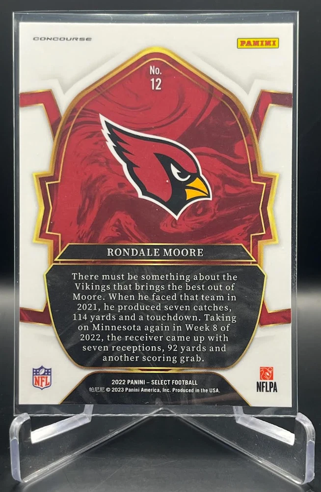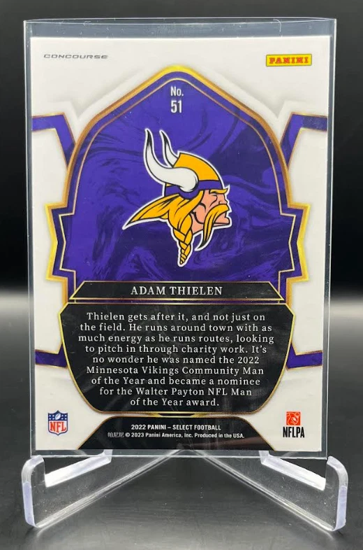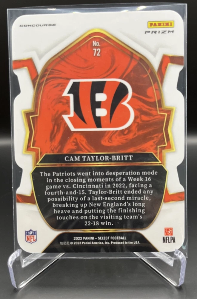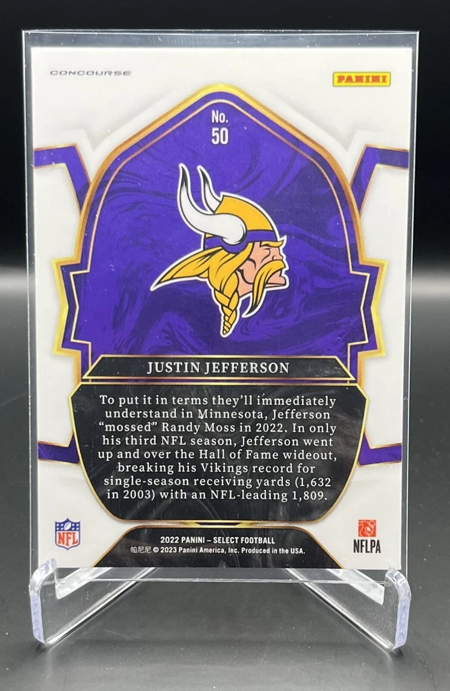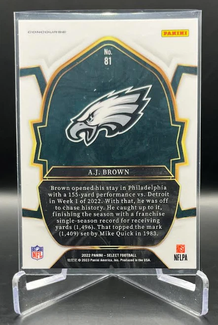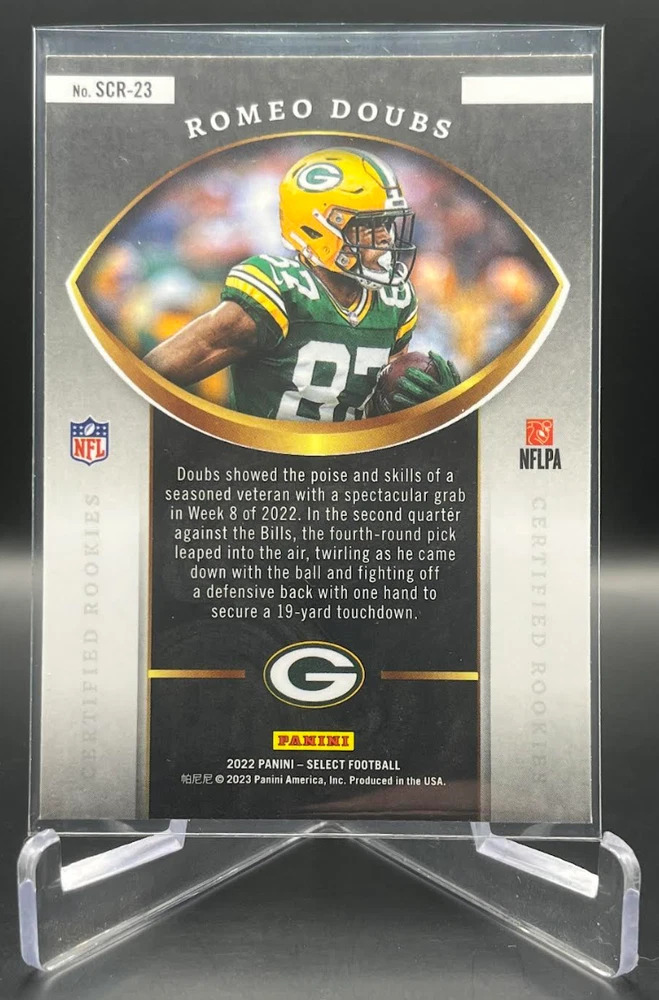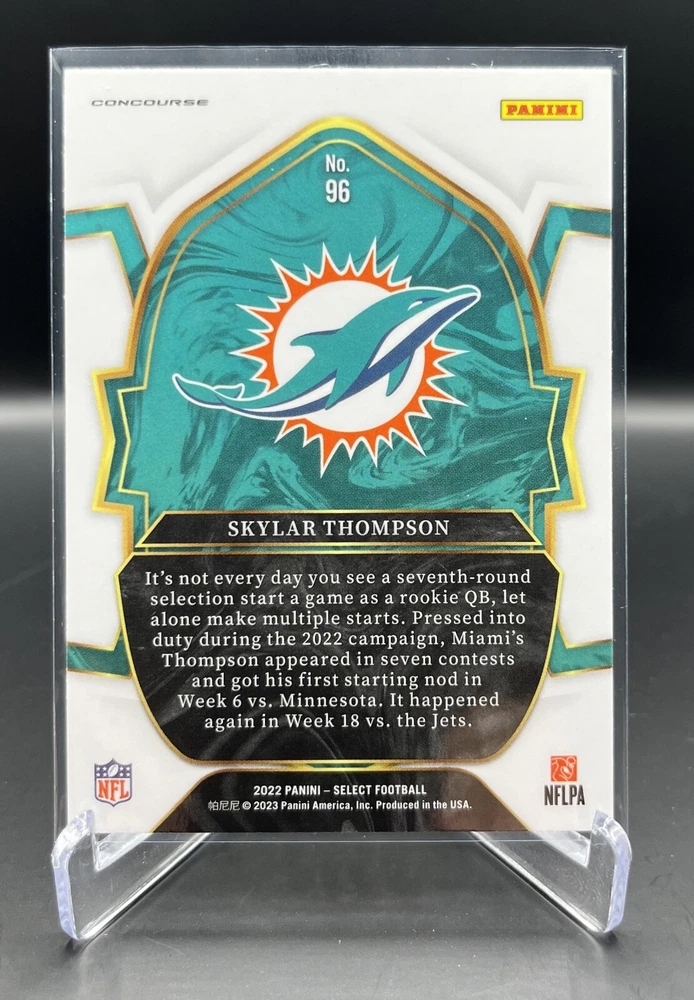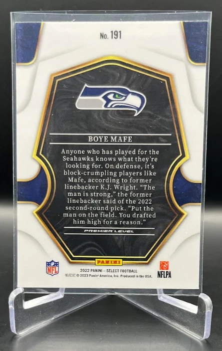 This 2022 Panini Select Football card is a must-have for any fan of the National Football League (NFL). With a variety of parallel, base set, rookie, and insert features, this card is sure to impress. The card is standard size and manufactured in the United States by Panini, a well-known sports trading card manufacturer. The card is an original and licensed product from the 2022 season of football. It is not autographed and is part of the 2022 Panini Select set. The card is perfect for collectors and fans alike who are looking to add a unique and valuable piece to their collection. How it Ships: Inside a penny sleeve and top loader sealed with painter's tape and surrounded by cardboard.