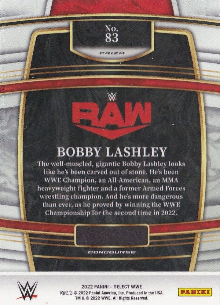 This Bobby Lashley Tri-Color Prizm card is a must-have for WWE collectors! The vibrant colors and sharp design make it stand out, and the Concourse series adds a premium feel. As a limited-edition card, it’s a great addition to any wrestling fan’s collection—definitely worth grabbing while you can!