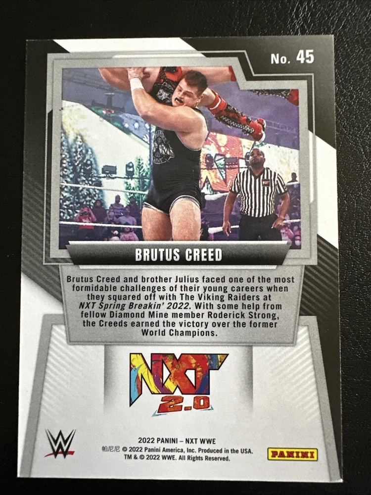 For all the WWE fans out there, a rare and highly sought after 2022 Panini WWE NXT Red #45 Brutus Creed RC #118/199 sports trading card is up for grabs! This card features the talented Brutus Creed, who is making waves in the wrestling world with his impressive skills and charismatic personality. The card is in great shape and is a near mint/mint item, with all the features of a true collector's item - including being serial numbered, short printed, and part of the base set. It is an original card from the manufacturer, Panini, and is perfect for anyone looking to add to their collection of wrestling memorabilia. Don't miss out on this opportunity to own a piece of WWE history!