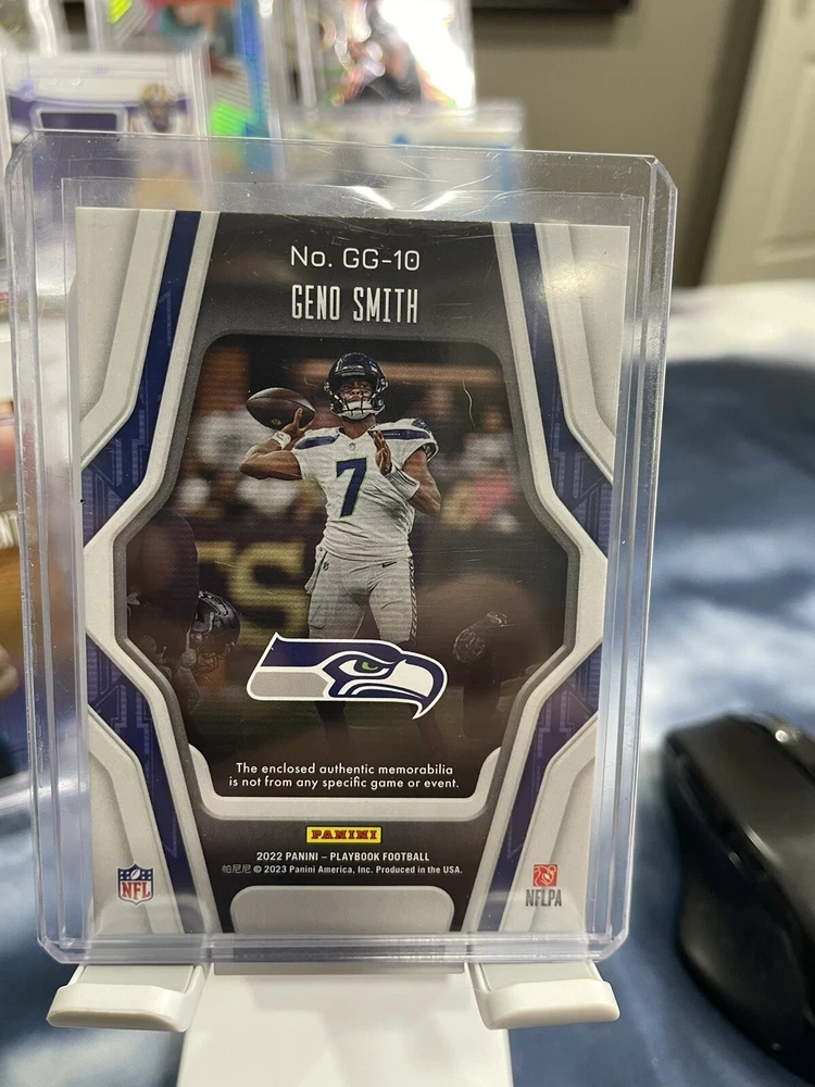 2022 Playbook Football Geno Smith Gridiron Gear Game Worn Patch. Condition is Ungraded. Shipped with USPS Ground Advantage.