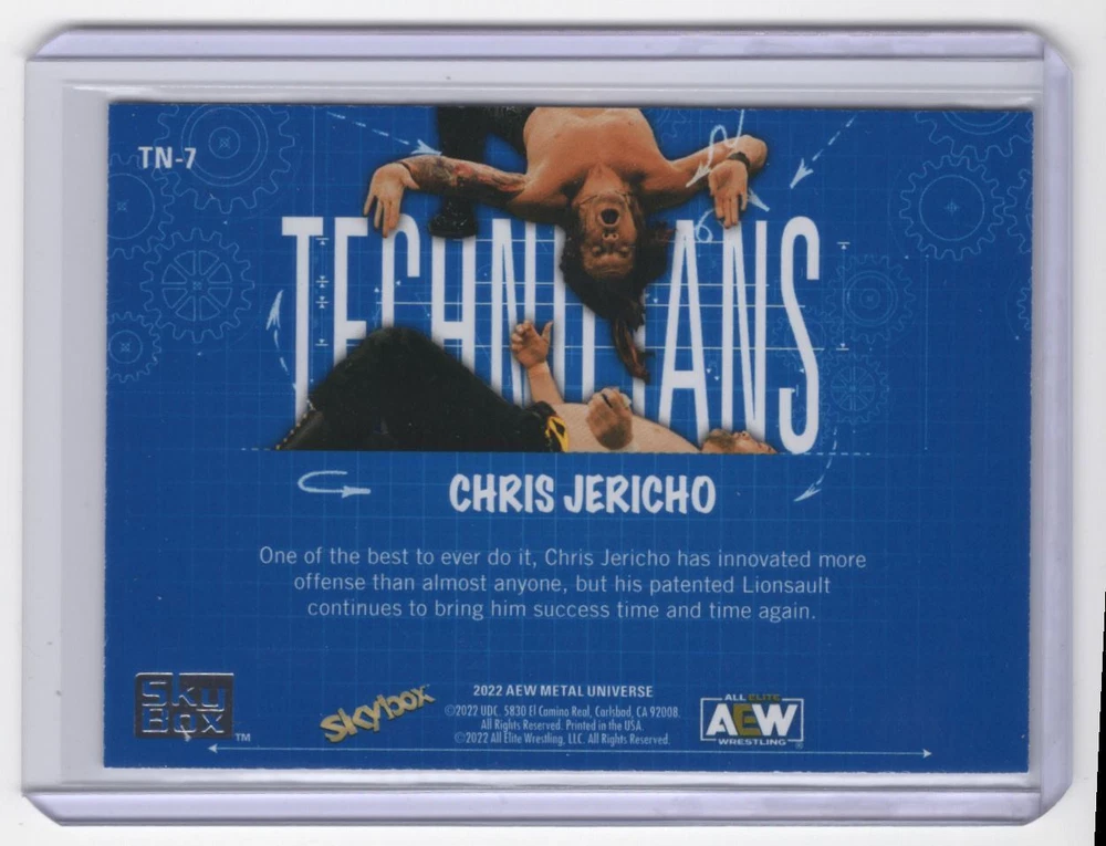 About Me Other Listings Feedback Add to Favorites Contact Me Striking Cards 901 2022 SkyBox Metal Universe AEW Technicians * Chris Jericho #TN-7 No stock photo / These are real scans or pictures Details Description: Chris Jericho Category: Wrestling Year: 2022 Product: SkyBox Metal Universe AEW Technicians Set: * Card Number: TN-7 Dimensions: 4" x 3" SKU: WR B0001 R01 C (531) Shipping If combined shipping is requested, we will send an invoice with the combined shipping charges as soon as possible. Please keep in mind that, in order to keep shipping costs down, we may need to put two cards into the same top-loader. Also, keep in mind that the tracking on eBay Standard Shipping (plain white envelope) is not very dependable. If you would like upgraded shipping to Ground Advantage, which gives more accurate tracking, just ask and we'll send you an invoice with those amounts! Listing By Kronocard trading cards software v2.6.5.5