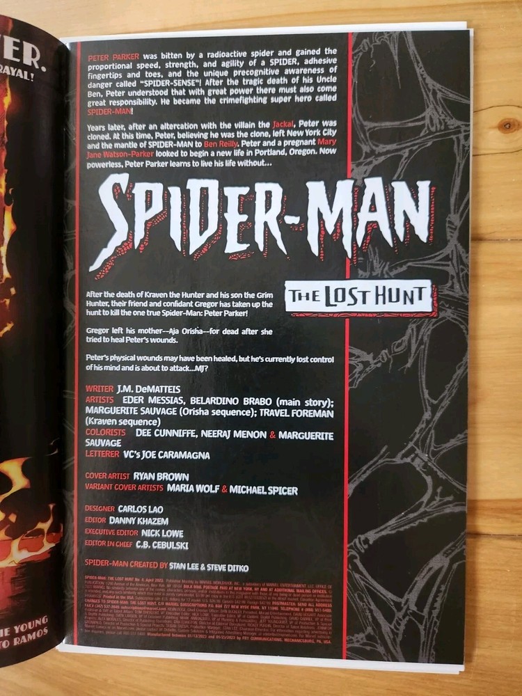 2022 Spider-Man: The Lost Hunt 4B: Mike Spider-Man Variant. High Grade 9.6.