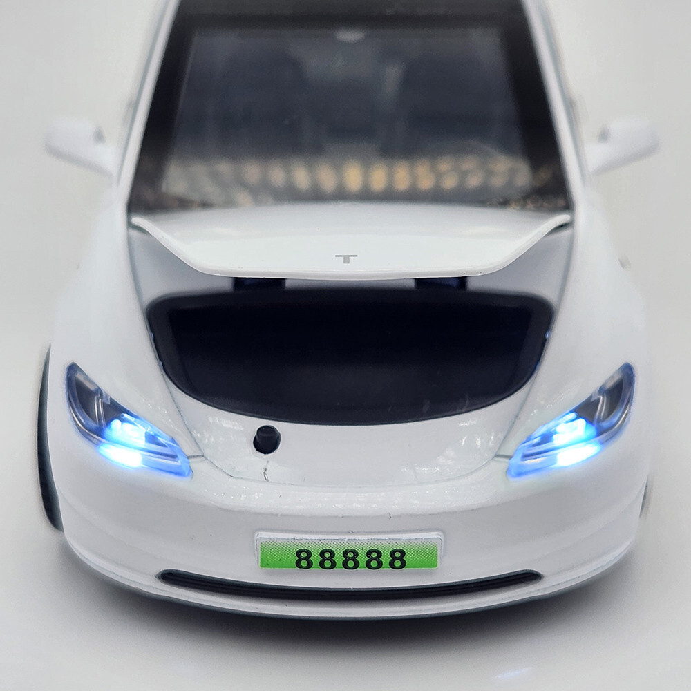 2022 - Tesla Model-3 - 4 Door - White - 1:32 Scale - Diecast Model With Opening Doors - Hood - Trunk - Lights - Sound. The Batteries Are Included. It Measures 6 Inches Or 15.25 CM In Length And 2.25 Inches Or 5.715 CM In Width. In Stock And Ready To Ship.