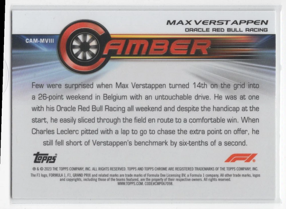 2022 Topps Chrome Formula 1 Camber Max Verstappen Oracle Red Bull Racing