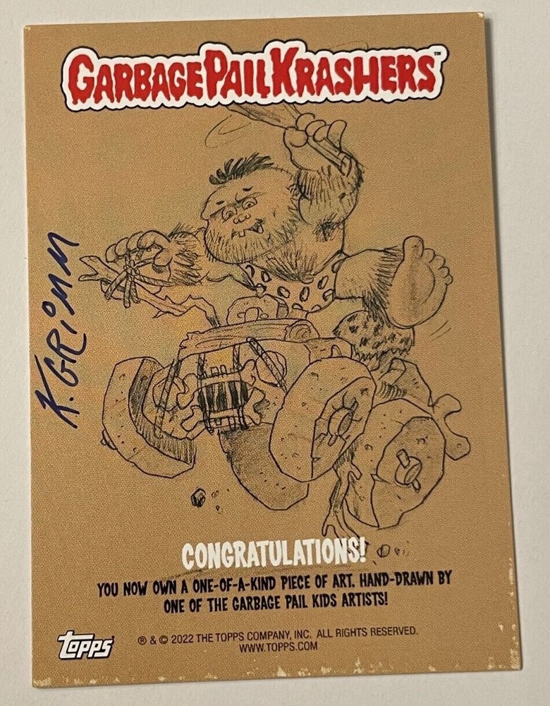This is an original 1 of a kind sketch card that is hand sketched and officially released by Topps! Very rare and there will never be another one! Artist: K. GRiMM Type: Artist Sketch Card Release Year: 2022 Series Release: Krashers 3 Character: New Wave Dave / Graffiti Petey Special Notes: Photo is showing the exact sketch that you will receive! Condition: Minty, placed in a sleeve once pulled.