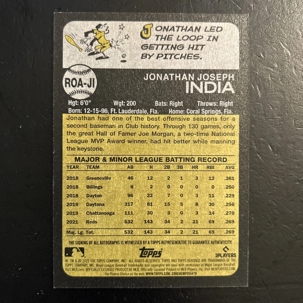 2022 Topps Heritage High Number - Real One Autographs #ROA-JI Jonathan India