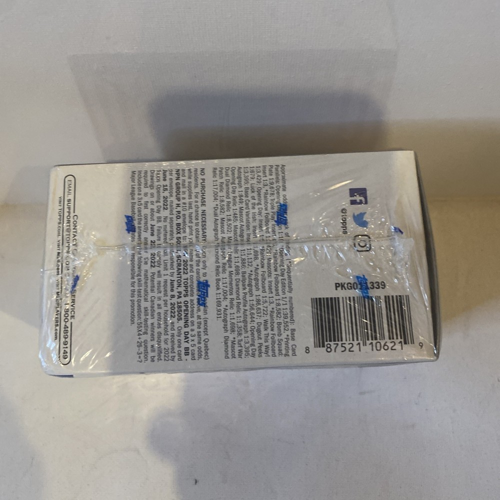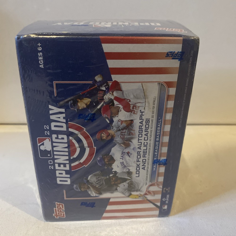 The 2022 Topps Opening Day Baseball Blaster Box is a sealed box containing 22 packs of baseball trading cards. This set features 154 standard-sized cards from the Major League Baseball season, showcasing top players like Fernando Tatis Jr., Juan Soto, and Mike Trout. Each box includes various exclusive cards such as rookie cards, inserts, and parallel versions, making it a coveted collector's item for fans of the sport. The event/tournament aspect of this product revolves around the MLB World Series, adding to the excitement for fans looking to collect their favorite players and teams.