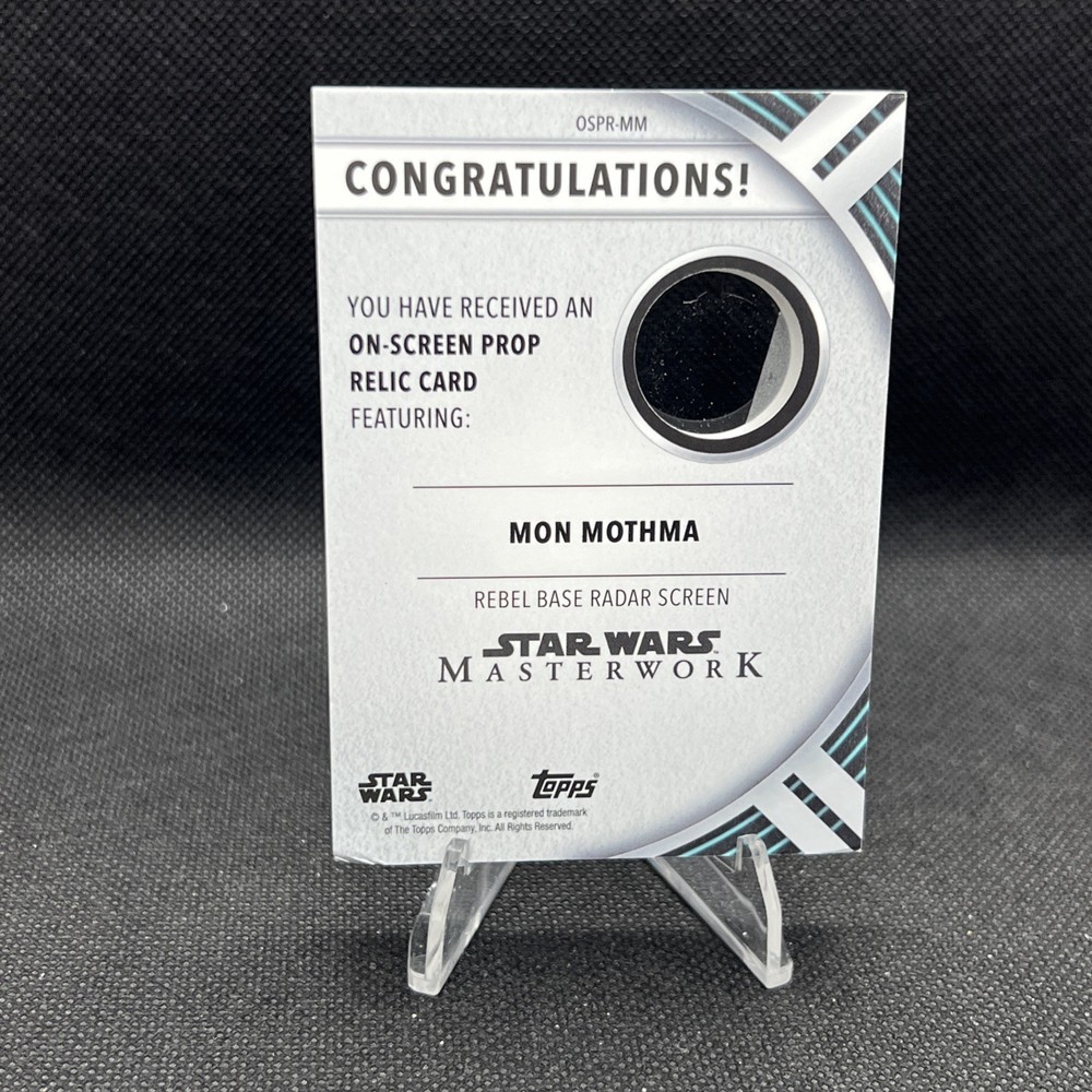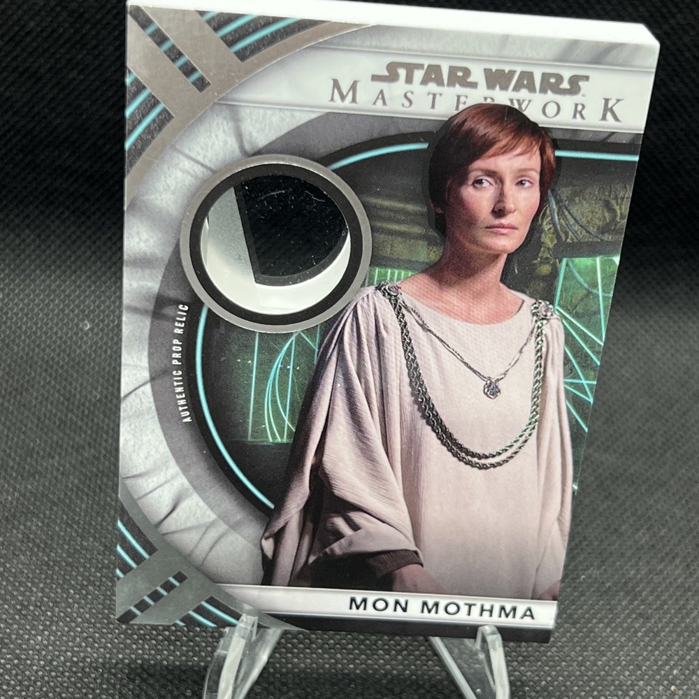 Dive into the Star Wars universe with the 2022 Topps Star Wars Masterwork On-Screen Rogue One Prop Relics card featuring the iconic Senator Mon Mothma. This sought-after memorabilia card, numbered OSPR-MM, showcases an authentic piece of the franchise's rich history, bringing a tangible piece of the galaxy far, far away right into your collection. Crafted with care by Topps, the esteemed manufacturer of collectible cards, this non-sport trading card is a must-have for fans and collectors alike. The card celebrates the 2022 season, capturing the essence of Star Wars with its impeccable design and attention to detail, making it a standout addition to any Star Wars Masterwork collection.