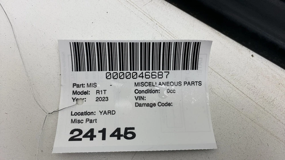 Seller Notes: “SEE PICTURES FOR DETAILS.” ID: B89E066B-5AF2-47F7-9330-649CDFAC4D72 Model: RIVIAN R1T gtin13: Does not apply Manufacturer Part Number: PT00002356 Country/Region of Manufacture: Unknown Year: 23 VIN #: 7FCTGBAA6PN025049 Brand: RIVIAN UPC: Does not apply OE/OEM Part Number: PT00002356 Type: Side Skirt Rocker Panel Molding Seal Stock: 24145