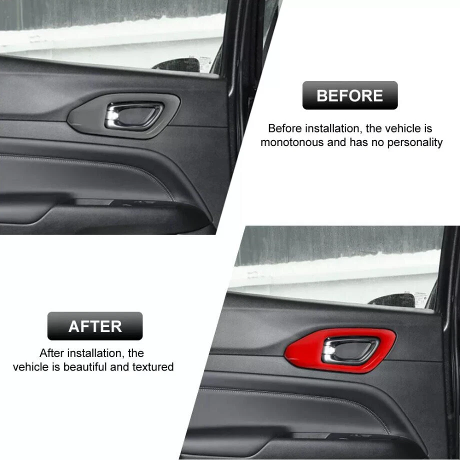 Fitment: Fit For Jeep Compass 2022 - 2025 Feature: Condition:100% Brand new Material: High quality ABS plastic Color: Red Package including:4PCS/Set Made in a ISO9001 Factory,good quality and have been exported all over the world Easy installation.3M automotive adhesive tape is attached. (Sold as seen, please ensure suitability carefully before purchase) INSTRUCTION MANUAL IS NOT INCLUDED Car Inner Door Handle Bowl Cover Trim For Jeep Compass 2022-2025 Accessories Red Fitment: Fit For Jeep Compass 2022 - 2025 Feature: Condition:100% Brand new Material: High Quality ABS Plastic Color: Red Package including:4PCS/Set Made in a ISO9001 Factory,good quality and have been exported all over the world Easy installation.3M automotive adhesive tape is attached. (Sold as seen, please ensure suitability carefully before purchase) INSTRUCTION MANUAL IS NOT INCLUDED Installation method: Step1: please clean the place with 50% alcohol to make sure no dust. Step2: remove the 3m glue in back; Step3 : heat the 3m glue by hot air gun;(A tip for putting on with supplied 3m tape is to warm the handles and the covers this makes the glue on the tape more sticky and they will stay on for ever!) Step 4: install the products in the right place ,Don't wash your car within 48hours. Customer Service If you cannot find the answers to your questions in this listing, please contact us , we will reply u ASAP,we will try our best to pleasure to serve u ! we hope have more happy and longtime shopping experience with u ! Shipping We will ship your order within 120 hours after receiving your verified payment (Excluding Weekends and Public Holidays) ! If u need delivery now , pls inform us , we will delivery it ASAP! shipping Shipping and handing Payment Refunds and returns About us shipping Country Approx / Delivery time United States : 8-25 working days United Kingdom / Australia / Canada : 20-35 working days Brazil / South America : may take up to 5-8 weeks due to strict Custom Inspection Italy / France / Spain / Germany/Eastern Europe : may take up to 6-8 weeks due to strict Custom Inspection Shipping and handing Item will be shipped within 24 -48 hours after full payment is received. · We ship worldwide with flat rate China Post , and other standard international shipping. this international order may take a longer time to arrive, Normally the shippment to worldwide is used to take 8 to 25 business days, exclude Weekend. Payment We accept PayPal only. Payment must be received in 7 business days of auction closing. Any special request cannot be accepted after 24 hours of payment, because most of orders will be processed instantly and same day dispatched. Refunds and returns Please contact us before leaving Netural or Negative feedback if you are not satisfied our service or products. Good communication is helpful for both of us to resolve any problems and issues. We are promising to try our best to provide the best service and 100% satisfaction for valuable buyer like you · All of the items are new. If it is not in new conditions, refund is offered. Otherwise, replacement can be offered for defective product. We will exchange or give the seller credit to buyer. · Please email us for all returns, and exchange shipping and handling charges are non-refundable. · Customers are responsible for return shippment fee except for wrong shipment or defective products. About us If you have any questions, please feel free to email our service specialists 24 Hours a Day, 7 Days a Week, and we will reply you ASAP. If no response within 24 Hours, please check the spam of mail box or kindly re-send it to us. We greatly appreciate your POSITIVE feedback. Please do NOT leave negative or neutral feedback without any contact. If you haven't received item in 30 days, please contact us and we will arrange refund. Advantage Will Never fade or rust Country/Region of Manufacture China Items Automotive > Exterior Accessories Approve Made in an ISO 9001 facility to ensure good quality Color Red Manufacturer Part Number Does Not Apply Placement on Vehicle Interior, Front, Rear, Left, Right Brand Unbranded Manufacturer Warranty 1 Year External Testing Certification ISO9001(ISO9001) Compatible with Fit For Jeep Compass 2022 - 2025 Material High quality ABS plastic Features Beautiful & Scratch Resistant Type Hood Finish Painted Package include 4PIECES/SET