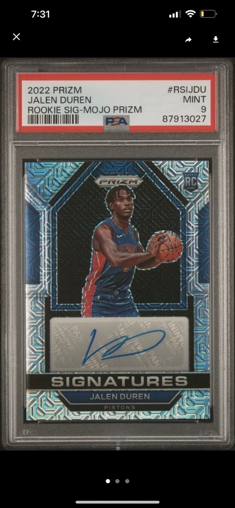 2022-23 Panini Prizm Jalen Duren Rookie Signatures AUTO Mojo /25 RC PSA