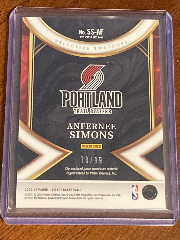 2022-23 Panini Select Anfernee Simons Purple Prizm Selective Swatches /99. Condition is Ungraded. Shipped with eBay Standard Envelope for Eligible Items up to $20.