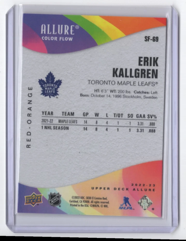 About Me Other Listings Feedback Add to Favorites Contact Me Striking Cards 901 2022-23 Red-Orange Erik Kallgren Toronto Maple Leafs #SF-69 No stock photo / These are real scans or pictures Details Description: Erik Kallgren Category: Hockey Year: 2022 Product: Upper Deck Allure Color Flow Set: Red-Orange Team: Toronto Maple Leafs Card Number: SF-69 Dimensions: 4" x 3" SKU: HK B0001 R01 C (4) Listing By Kronocard trading cards software v2.6.5.3