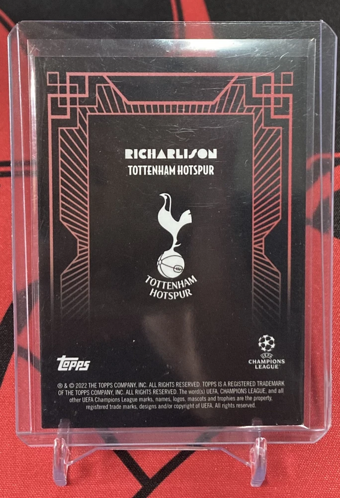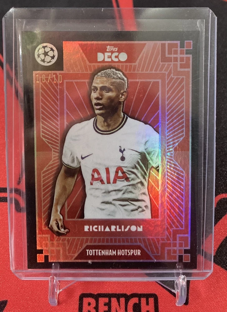 This is a rare 10/10 Topps Deco UCL trading card featuring Richarlison, a soccer player from the Tottenham Hotspur team. The card is part of the Current Stars insert set and is a parallel/variety with a red design. It is also serial numbered and considered an insert, making it a valuable addition to any sports trading card collection. The card is from the 2022-23 season and is an excellent find for any fan of the Premier League. Feel free to send me a message with any additional photos or questions. All sales are final, no returns or refunds are accepted. Please see the photos carefully before buying. Please note, if you buy the item, you have accepted the conditions of the card. Cards will be secured and shipped as best as possible. In the unlikely event that the card is lost or damaged upon arrival, please note we will not take any responsibility if choosing the standard shipping option (Standard comes with tracking). In the unlikely event that the card is lost or damaged upon arrival, please note we will not take any responsibility if choosing the standard shipping option (Standard comes with tracking). All tax related should be handled on your end. Please do not hesitate to ask for questions or more pictures. Thank you!