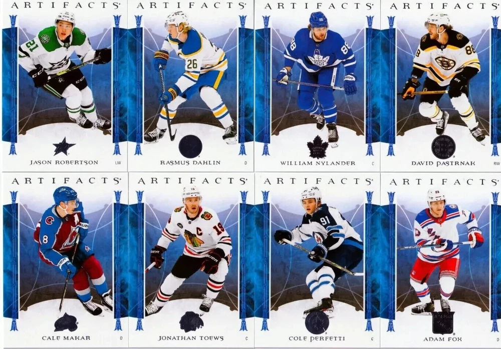 SEE LIST BELOW Get ready to add some amazing cards to your collection with our 2022-23 UD Artifacts U-PICK Base Team Sets! This set includes 100 cards featuring all NHL teams and is perfect for any Ice Hockey fan. Each card is manufactured by Upper Deck and is a part of the 2022-2023 set. These Sports Trading Cards are a must-have for any collector and come with a range of features. The cards are not autographed, but you can still add them to your collection and enjoy the thrill of owning them. So, what are you waiting for? Pick your favorite team set and add it to your collection today! Raw Condition for Modern Cards Unless otherwise noted, raw modern cards are listed in Near Mint-Mint condition or better. A NM-MT card appears to be Mint at first glance, but upon closer inspection, may exhibit some of the following: minor print defects (e.g. roller marks, print line, dimple), minor scratches, slight edge wear, and slight corner wear. Centering is clearly visible in the images provided and does not factor into our condition assessment. Return Policy Returns are only accepted on the rare occasion the item is not as described. If you are making a return, please initiate the return process through eBay so a mailing label can be provided for you. 25 Jamie Drysdale Anaheim Ducks 28 Maxime Comtois Anaheim Ducks 59 Trevor Zegras Anaheim Ducks 72 Cam Fowler Anaheim Ducks 16 Karel Vejmelka Arizona Coyotes 22 Clayton Keller Arizona Coyotes 67 Shayne Gostisbehere Arizona Coyotes 45 Jeremy Swayman Boston Bruins 66 Taylor Hall Boston Bruins 80 Charlie McAvoy Boston Bruins 87 David Pastrnak Boston Bruins 13 Rasmus Dahlin Buffalo Sabres 47 Henri Jokiharju Buffalo Sabres 56 Dylan Cozens Buffalo Sabres 8 Blake Coleman Calgary Flames 63 Sean Monahan Calgary Flames 88 Matthew Tkachuk Calgary Flames 2 Jaccob Slavin Carolina Hurricanes 41 Martin Necas Carolina Hurricanes 86 Teuvo Teravainen Carolina Hurricanes 27 Jonathan Toews Chicago Blackhawks 48 Seth Jones Chicago Blackhawks 61 Patrick Kane Chicago Blackhawks 51 Nathan MacKinnon Colorado Avalanche 55 Cale Makar Colorado Avalanche 64 Alex Newhook Colorado Avalanche 29 Jack Roslovic Columbus Blue Jackets 46 Jakub Voracek Columbus Blue Jackets 95 Cole Sillinger Columbus Blue Jackets 14 Jake Oettinger Dallas Stars 20 Joe Pavelski Dallas Stars 74 Jason Robertson Dallas Stars 34 Tyler Bertuzzi Detroit Red Wings 62 Moritz Seider Detroit Red Wings 93 Filip Hronek Detroit Red Wings 5 Ryan Nugent-Hopkins Edmonton Oilers 36 Darnell Nurse Edmonton Oilers 58 Jesse Puljujarvi Edmonton Oilers 7 Spencer Knight Florida Panthers 35 Carter Verhaeghe Florida Panthers 84 Sam Reinhart Florida Panthers 52 Cal Petersen Los Angeles Kings 68 Alex Iafallo Los Angeles Kings 91 Drew Doughty Los Angeles Kings 6 Mats Zuccarello Minnesota Wild 85 Marcus Foligno Minnesota Wild 19 Nick Suzuki Montreal Canadiens 77 Jeff Petry Montreal Canadiens 99 Josh Anderson Montreal Canadiens 12 Philip Tomasino Nashville Predators 24 David Farrance Nashville Predators 81 Matt Duchene Nashville Predators 90 Eeli Tolvanen Nashville Predators 26 Jesper Bratt New Jersey Devils 54 Dawson Mercer New Jersey Devils 70 Yegor Sharangovich New Jersey Devils 21 Alexis Lafreniere New York Rangers 23 Ryan Pulock New York Islanders 32 Brock Nelson New York Islanders 38 Anders Lee New York Islanders 83 Mika Zibanejad New York Rangers 96 Adam Fox New York Rangers 1 Tim Stutzle Ottawa Senators 40 Shane Pinto Ottawa Senators 53 Drake Batherson Ottawa Senators 11 Joel Farabee Philadelphia Flyers 71 Carter Hart Philadelphia Flyers 78 Cam Atkinson Philadelphia Flyers 18 Evgeni Malkin Pittsburgh Penguins 57 John Marino Pittsburgh Penguins 76 Kris Letang Pittsburgh Penguins 98 Jake Guentzel Pittsburgh Penguins 39 Logan Couture San Jose Sharks 44 Erik Karlsson San Jose Sharks 50 Jasper Weatherby San Jose Sharks 9 Jordan Eberle Seattle Kraken 30 Jaden Schwartz Seattle Kraken 49 Yanni Gourde Seattle Kraken 10 Ryan O'Reilly St. Louis Blues 60 Jordan Binnington St. Louis Blues 75 Pavel Buchnevich St. Louis Blues 3 Nikita Kucherov Tampa Bay Lightning 42 Alex Killorn Tampa Bay Lightning 100 Steven Stamkos Tampa Bay Lightning 33 Mitch Marner Toronto Maple Leafs 69 John Tavares Toronto Maple Leafs 89 William Nylander Toronto Maple Leafs 37 Quinn Hughes Vancouver Canucks 94 Conor Garland Vancouver Canucks 97 Elias Pettersson Vancouver Canucks 15 William Karlsson Vegas Golden Knights 65 Mark Stone Vegas Golden Knights 82 Jonathan Marchessault Vegas Golden Knights 31 Connor McMichael Washington Capitals 43 John Carlson Washington Capitals 73 Nicklas Backstrom Washington Capitals 4 Cole Perfetti Winnipeg Jets 17 Kyle Connor Winnipeg Jets 79 Nikolaj Ehlers Winnipeg Jets 92 Josh Morrissey Winnipeg Jets