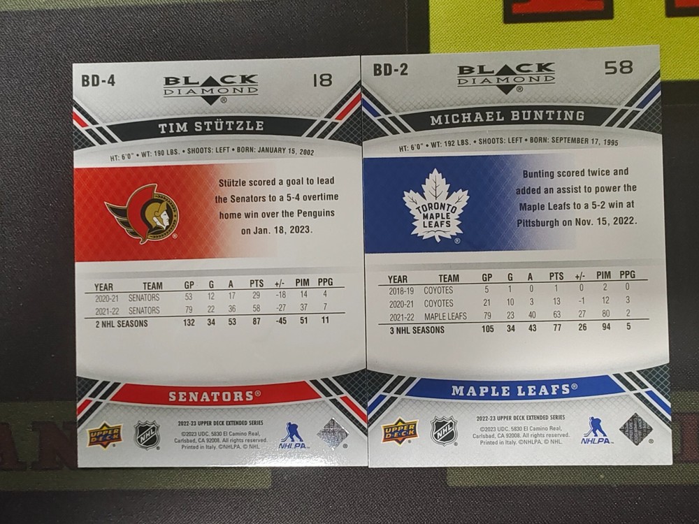 Just scored this awesome 2022-23 Upper Deck Extended Series Black Diamond 1 Gem Lot (2) and couldn’t be happier! The cards are in fantastic condition—clean edges, sharp corners, and vibrant colors. Seller was super responsive and shipped quickly. Love that they take the time to describe everything clearly and even highlight any imperfections. Great deal for collectors looking for high-quality raw cards that could easily grade PSA 8 or better. Definitely checking out their store for more gems!