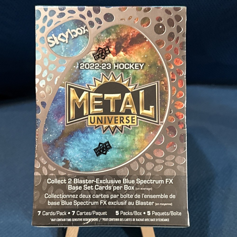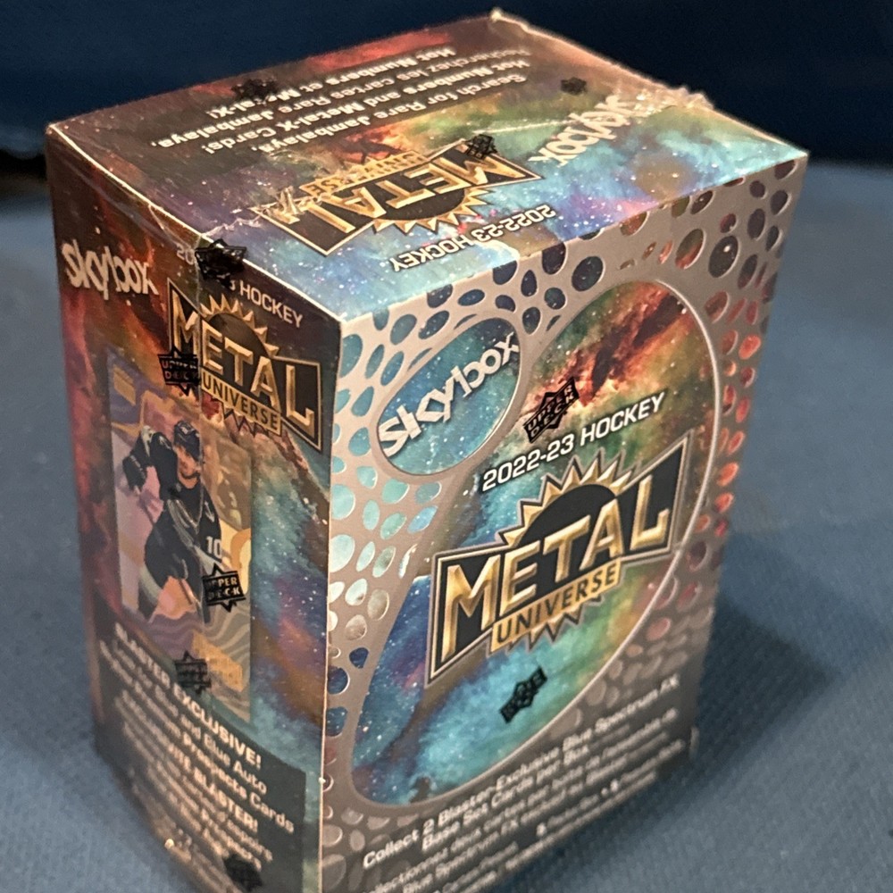 The 2022-23 Upper Deck Skybox Metal Universe Hockey Trading Cards 1 Blaster Box contains 35 standard size cards featuring players from the National Hockey League (NHL). This set offers a variety of cards including short print, base set, exclusive, rookie, parallel, and chase cards. Manufactured by SkyBox in the United States, these metal cards are a must-have for fans and collectors looking to add unique and rare pieces to their collection.