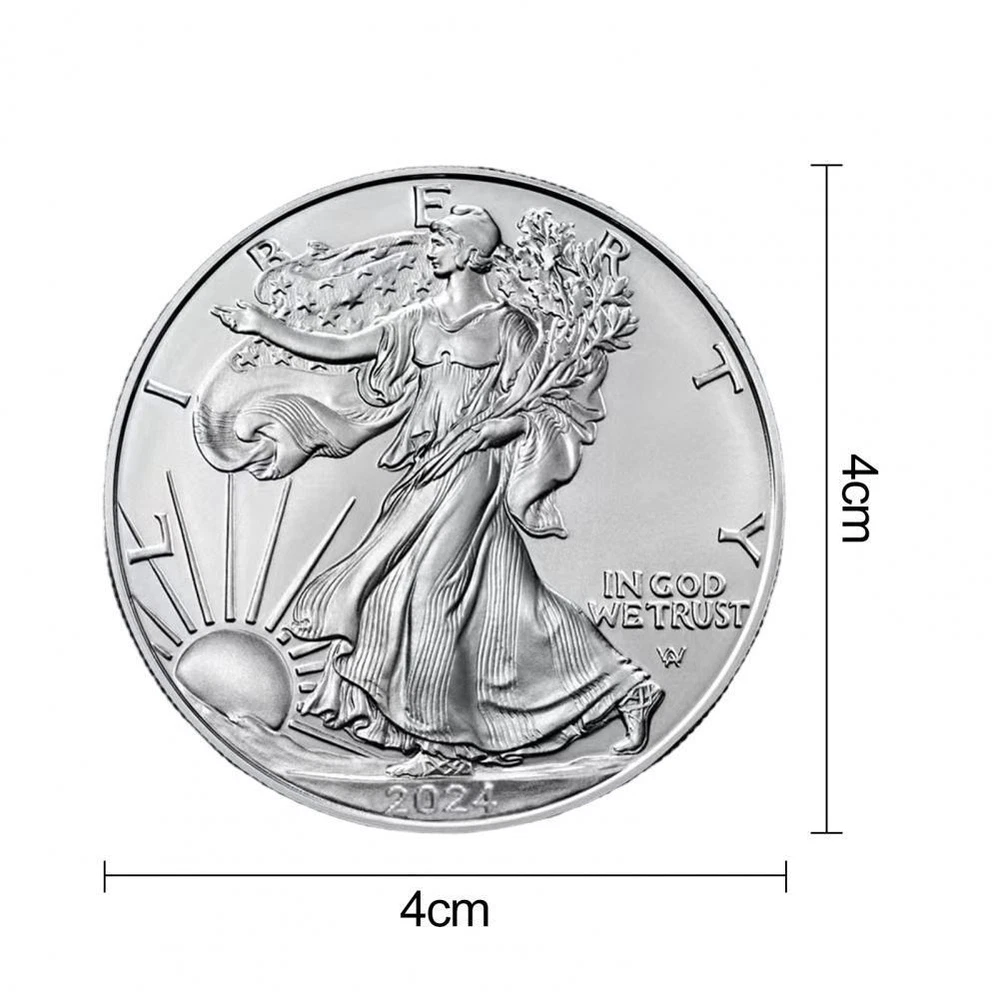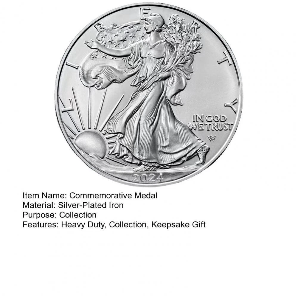 FREE SHIPPING 30 DAYS RETURN EASY PAYMENT 2023 $1 American Silver Eagle 1 oz BU... Description Commemorative Eagle Medal Statue of Liberty Collection Coin 2024 Statue of Liberty Commemorative Medal Silver Color American High-quality metal construction. intricate details of the statue of liberty and spread-winged eagle. perfect for display or gifting. holds historical significance and aesthetic appeal. adds elegance to any collection. Item Name: Commemorative Medal Material: Silver-Plated Iron Purpose: Collection Features: Heavy Duty, Collection, Keepsake Gift Size Detail: L: 4cm/1.57", W: 4cm/1.57", H: 0.3cm/0.12" (Approx.) Notes: Due to the light and screen setting difference, the item's color may be slightly different from the pictures. Please allow slight dimension difference due to different manual measurement. Package Includes: 1 x Commemorative Medal REVIEWS The product came very well packaged. I'm very happy. thank you for everything. Seller strongly recommended. This is great! I definitely recommend! Product looks amazing Delivery was fast. Excellent seller, great communication. I advise everyone