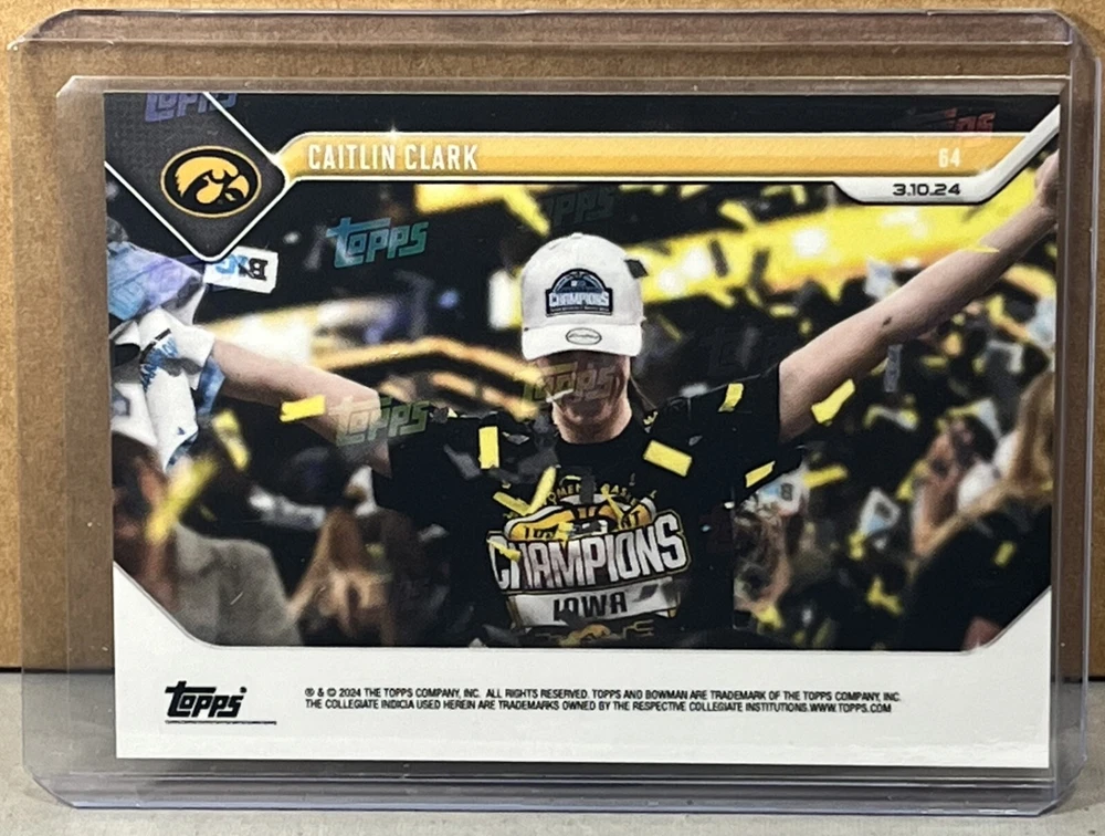 2023 24 BOWMAN U NOW #64 CAITLIN CLARK University of Iowa Women's Basketball leads comeback to win third-straight Big Ten Tournament Print run of 15229. Worldwide shipping available. U.S. - Winning bidder to add $3.50 for careful USPS first class shipping with delivery confirmation. Add .50 for each additional item. All other countries - ship costs are calculated by eBay through international shipping program. Please message if interested in multiple items. Bid with confidence, 49000+ feedback. Thanks and check out my auctions ending every Sunday. Please note that combined ship rates are for items paid for on one invoice, thanks!