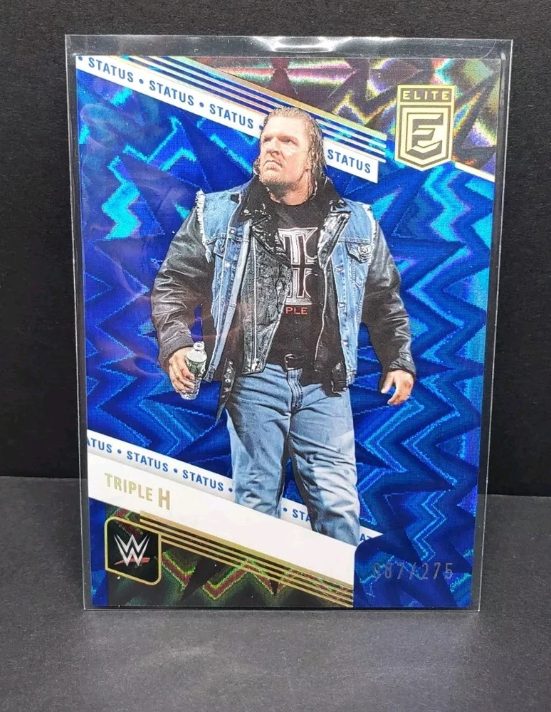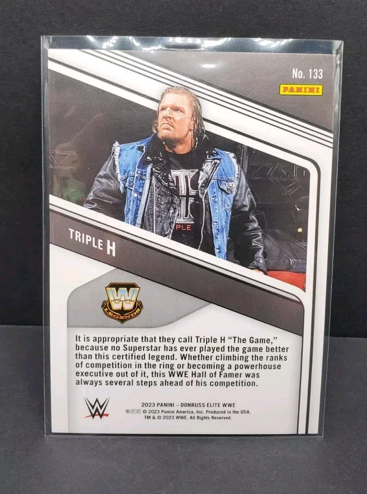 This rare 2023 Donruss Elite WWE trading card features Triple H, the legendary wrestler and WWE team leader. The card is a blue parallel variety, numbered 087/275, and is part of the 2023 Donruss Elite set. It also includes features such as being serial numbered and having a card number of 133. The card is perfect for any WWE fan or sports trading card collector, and is sure to be a valuable addition to any collection.