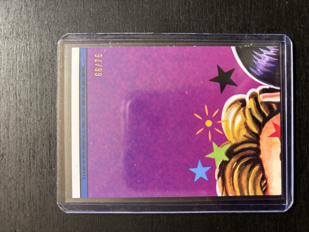 Delve into the whimsical world of Garbage Pail Kids with the 2023 Intergoolactic Mayhem #34, featuring the delightful LeeLoo Loo 34A and Ellie Element 34B cards. These collectible cards, crafted by the renowned Topps manufacturer, showcase the unique artistry and humor synonymous with the franchise. Each card is a non-sport trading card that celebrates the quirky and the obscure, making it a must-have for enthusiasts and collectors alike. Adding to its appeal, this limited edition set boasts the authentic signature of David Gross, intensifying its collectible value. Whether you're a long-time admirer of Garbage Pail Kids or a newcomer to the series, these cards, with their distinct spoofed characters, offer a playful spin on the classic trading card experience.