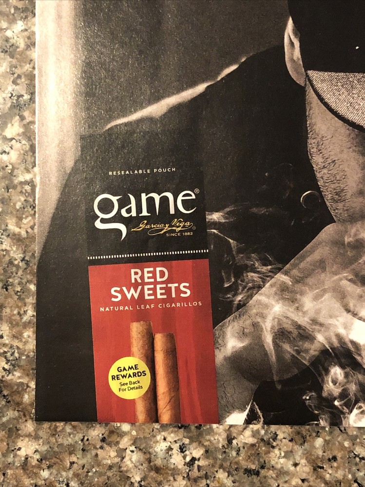 Up for auction is a fantastic print ad for 2023 Game Natural Leaf Cigarillos Cigars. This collectible piece features a captivating design that perfectly captures the essence of the product. The ad is made in the United States and is a must-have for any tobacciana or cigar fan. This rare ad is a great addition to any collection and is guaranteed to impress. Don't miss out on the opportunity to own this piece of history. Bid now and add this unique item to your collection! Original approximate 8”x11” magazine print ad.
