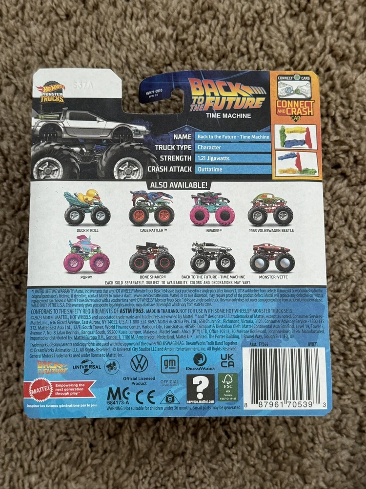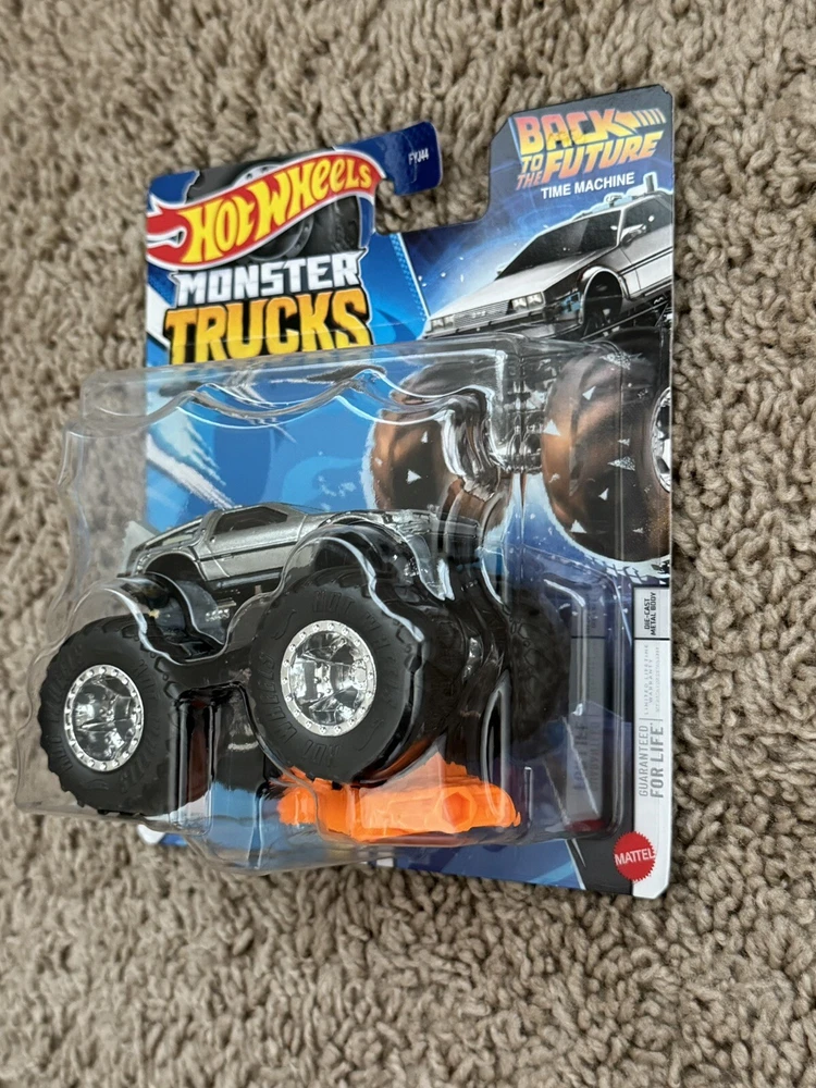 The 2023 Hot Wheels Monster Truck is a DeLorean monster truck inspired by the iconic time machine from "Back to the Future." This 1:64 scale diecast vehicle features a multi-color design and comes in an unopened box, making it a mint condition collectible. Suitable for children aged three and up, this toy appeals to fans of the movie franchise and collectors of diecast vehicles. With its detailed design and tie-in to a popular film series, this Hot Wheels monster truck offers a unique and exciting addition to any toy collection.