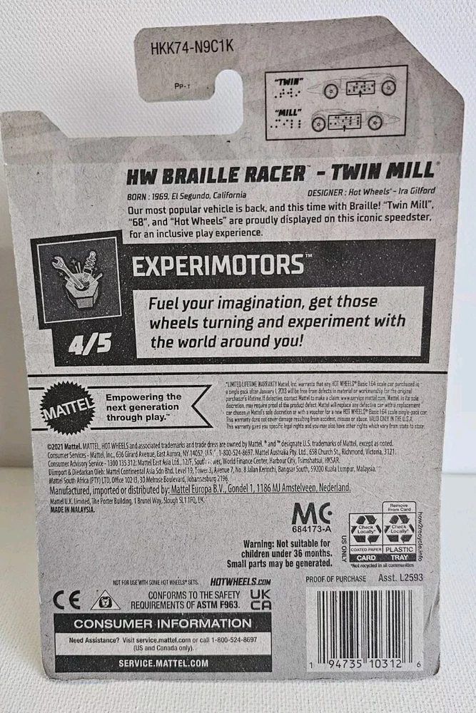 2023 Hotwheels Braile Racer - Twin Mill still in HW sleeve. Original item still in the box will be packaged with care and shipped within 24 hours of purchase. If you see anything else, I will bundle to save on shipping for you. Please feel free to ask any questions if you have them. See pictures for details and condition. This car will be packaged with care and shipped within 24 hours of receiving payment.