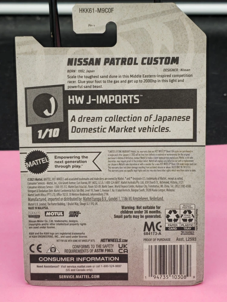 Vehicle Year: 2023 Gender: Boys & Girls MPN: Does Not Apply Character Family: Hot Wheels Material: Diecast Vehicle Make: Nissan Year of Manufacture: 2023 Vehicle Type: Car Scale: 1:64 Features: Limited Edition, Special Edition UPC: Does not apply Recommended Age Range: Adult Collector Country/Region of Manufacture: Malaysia Color: Blue Brand: Nissan gtin13: Does not apply Series: HW J-Imports Model: Nissan Patrol