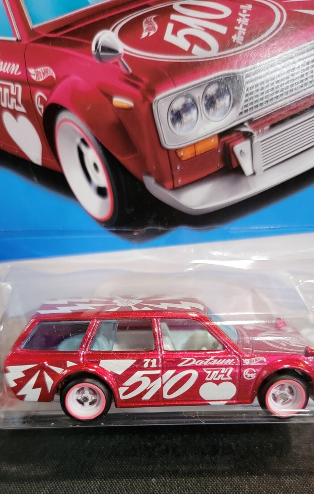 This limited edition Hot Wheels Super Treasure Hunt Datsun 510 Bluebird Wagon is a must-have for any diecast car collector. The unopened box adds to the excitement of owning this highly sought-after model. The 1:64 scale model is made of high-quality diecast material and features a stunning red color with pink tire rims. The Hot Wheels car is recommended for children above the age of 3 and is perfect for both boys and girls. The car is part of the Hot Wheels Super Treasure Hunt series and is modeled after the Datsun 510 Bluebird Wagon. This model is perfect for those who love contemporary manufactured diecast and toy vehiRims. See pictures for details Free shipping!!
