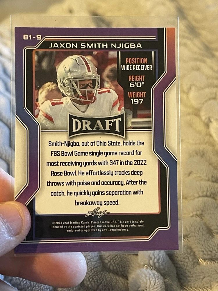 ππ2023 Leaf Draft Rookie XRC #B1-9 Jaxon Smith-Njigbaππ