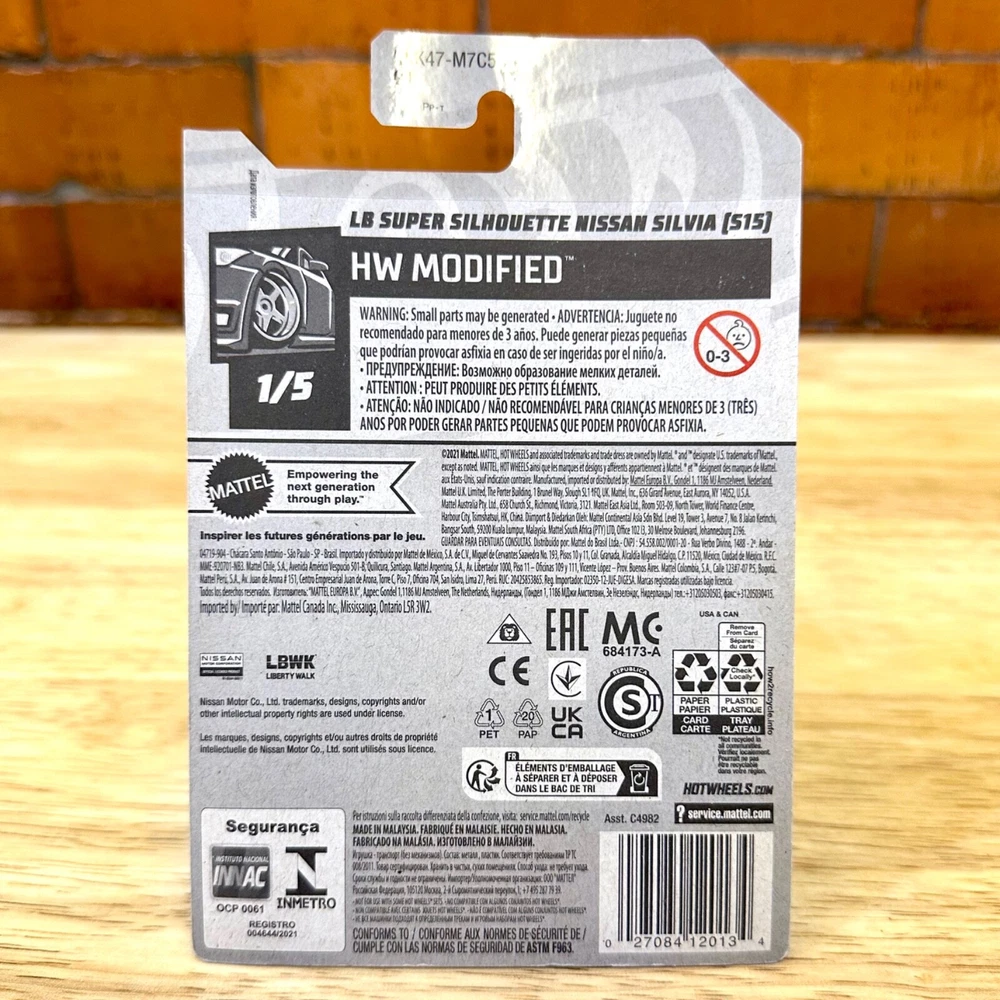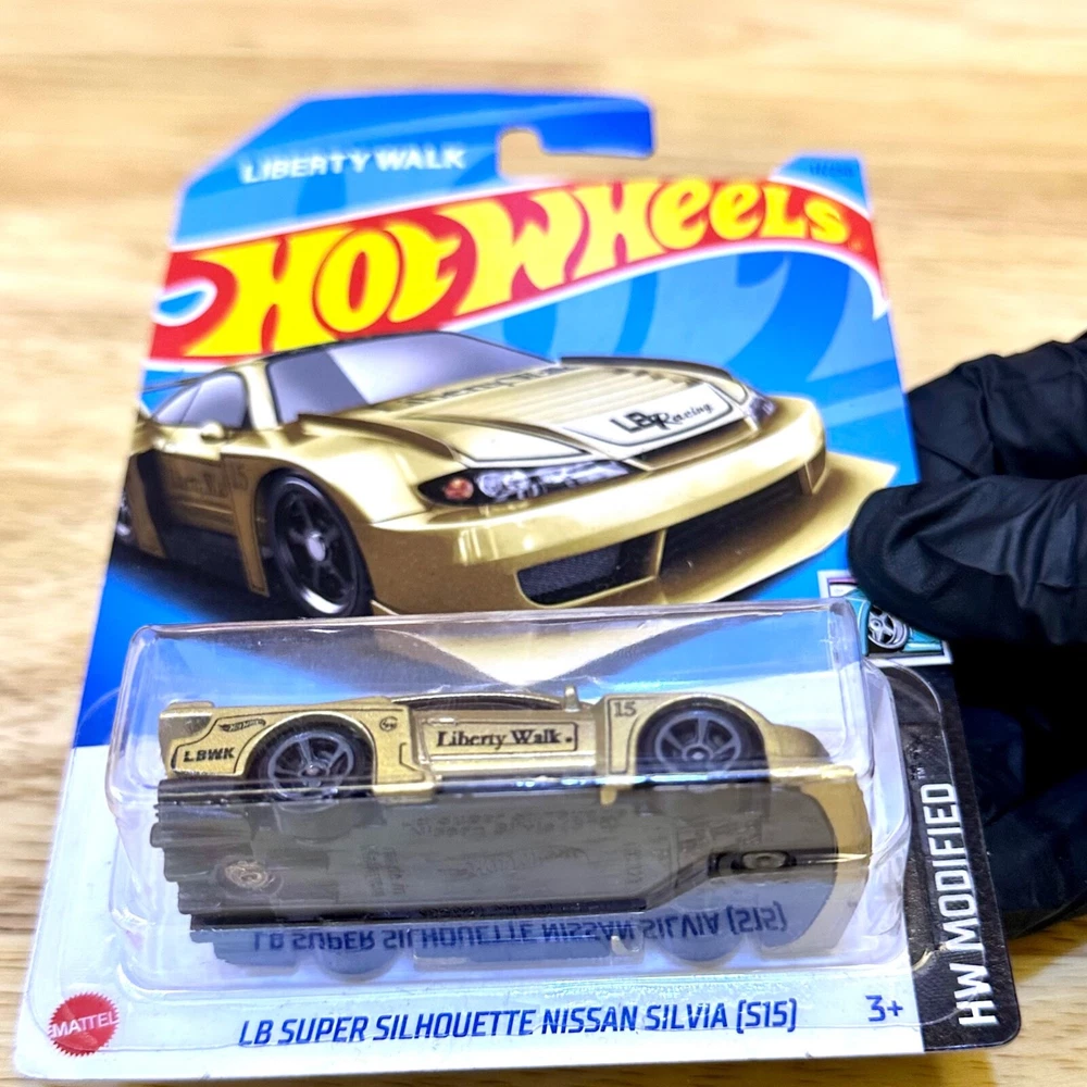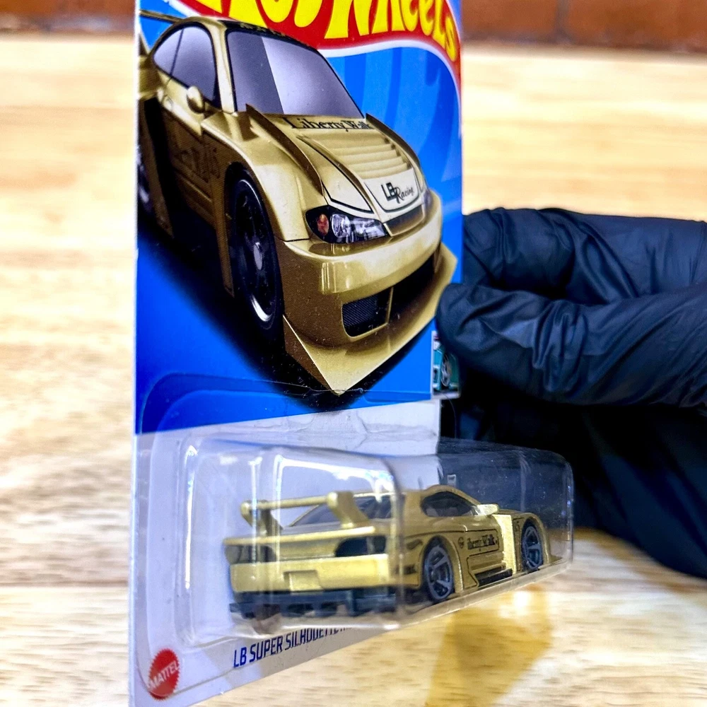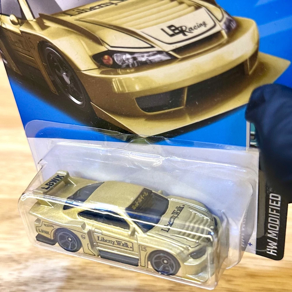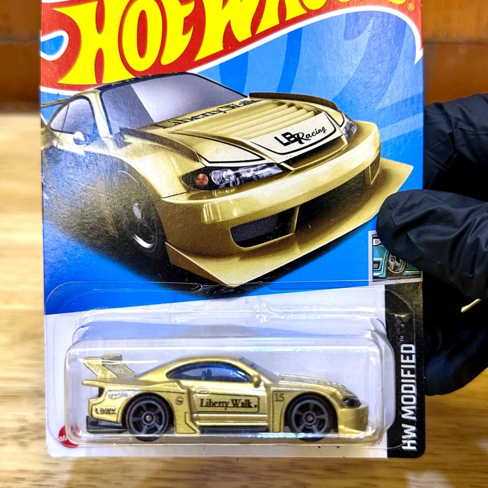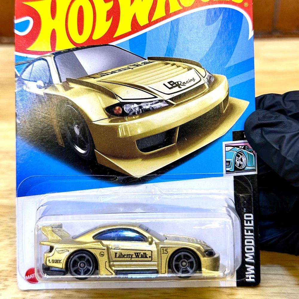 Capture the essence of speed and style with the 2023 Mainline Hot Wheels Gold LB Super Silhouette Nissan Silvia S15 Liberty Walk. This 1:64 scale diecast model is a true representation of the iconic Nissan Silvia S15, meticulously crafted to showcase the vehicle's sleek design and contemporary aesthetics. A must-have for collectors and enthusiasts, this model is part of the HW Modified series and comes in a striking gold color that's sure to stand out in any display. With its limited edition status and special features, it's a unique piece that celebrates the fusion of automotive artistry and performance.