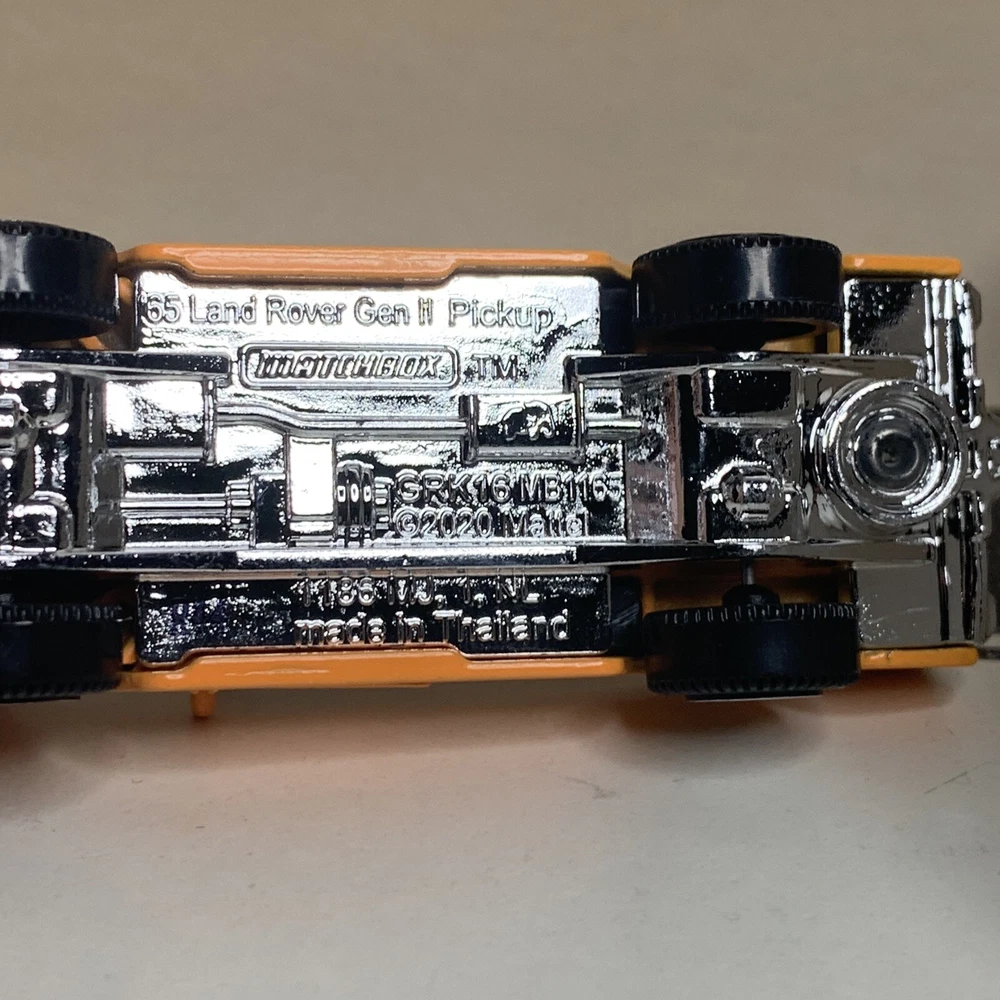 Type:Car - PassengerYear of Manufacture:1965Material:DiecastModel:Matchbox Land Rover IIgtin13:Does not applyBrand:MatchboxVehicle Type:Pickup TruckVehicle Year:1965Color:OrangeScale:1:64Vehicle Make:Land RoverUPC:Does not apply