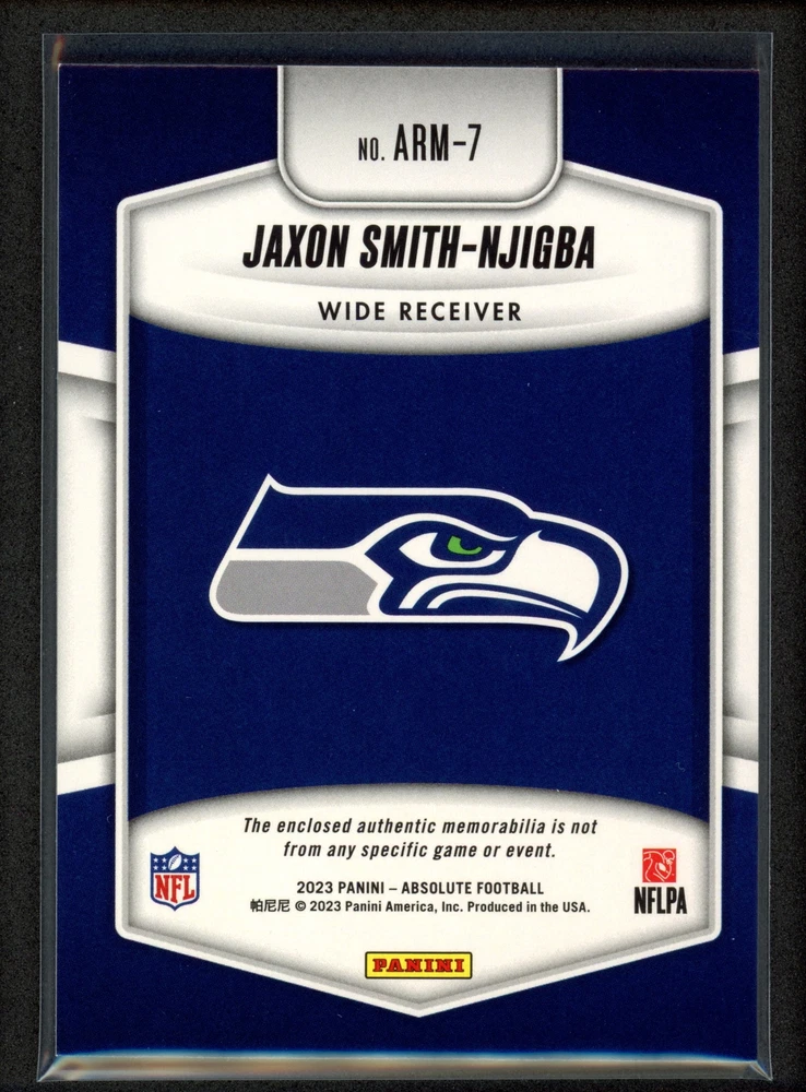 2023 Panini Absolute Jaxon Smith-Njigba RC PATCH #ARM-7 Seahawks. Condition is Ungraded. Shipped with USPS Ground Advantage.