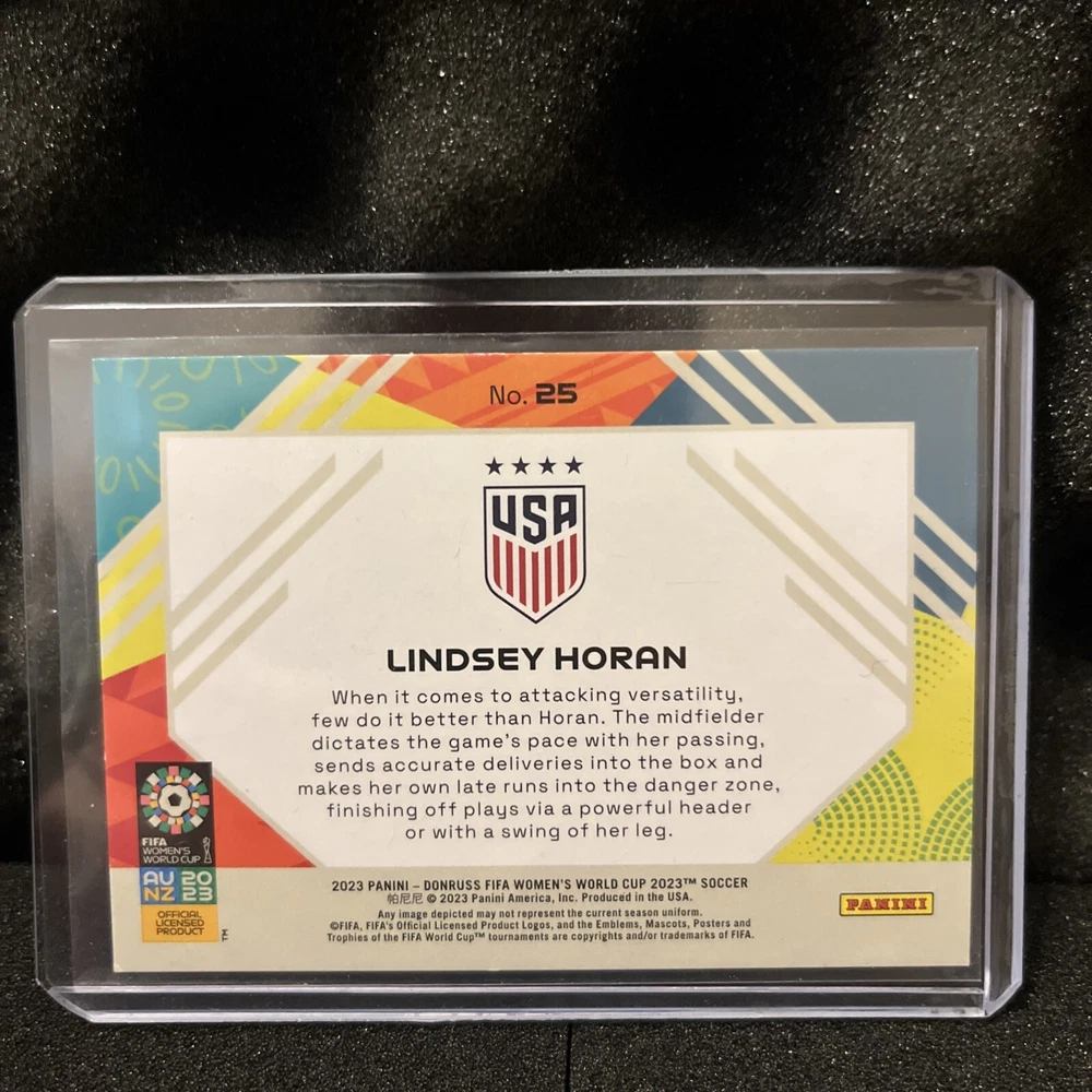 Card Number: 25 Type: Sports Trading Card Player/Athlete: Lindsey Horan Sport: Soccer Insert Set: Field Vision League: Fifa Set: 2023 Panini Donruss FIFA Women's World Cup Autographed: No Year Manufactured: 2023 Season: 2023 Manufacturer: Donruss Features: Insert, Serial Numbered Team: United States
