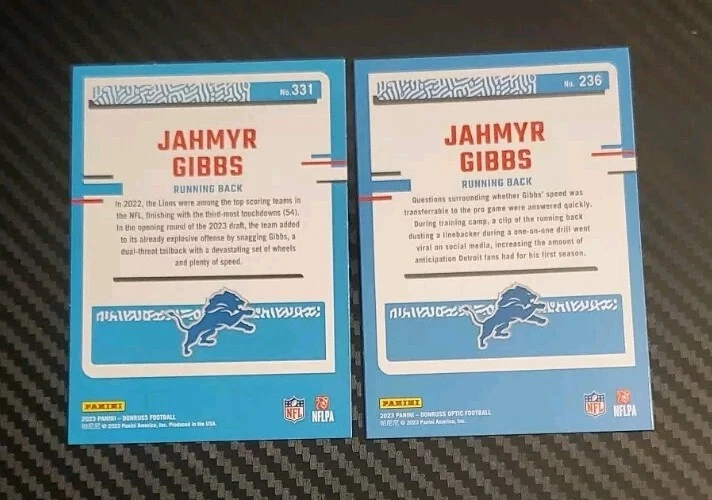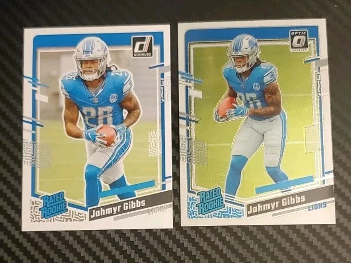 2023 Panini Donruss & Optic Jahmyr Gibbs Rated Rookie (2 Card Lot). Condition is New. Shipped with eBay Standard Envelope for Eligible Items up to $20.