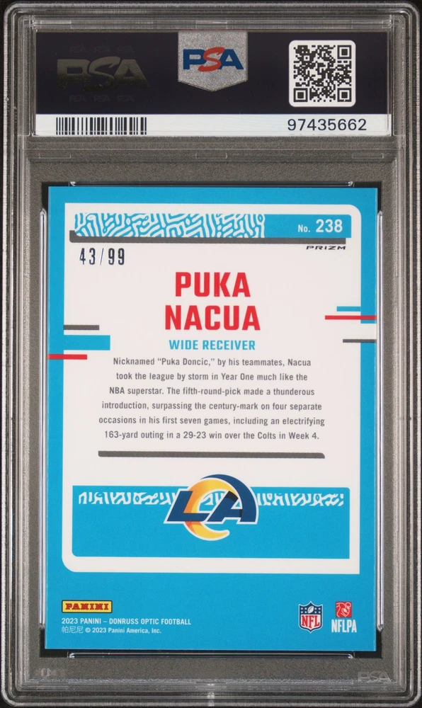 You are purchasing a 2023 Panini Donruss Optic Puka Nacua #238 Red /99 PSA 10. You will receive the exact item in the photographs. Thank you for looking. Listed With Mascot .