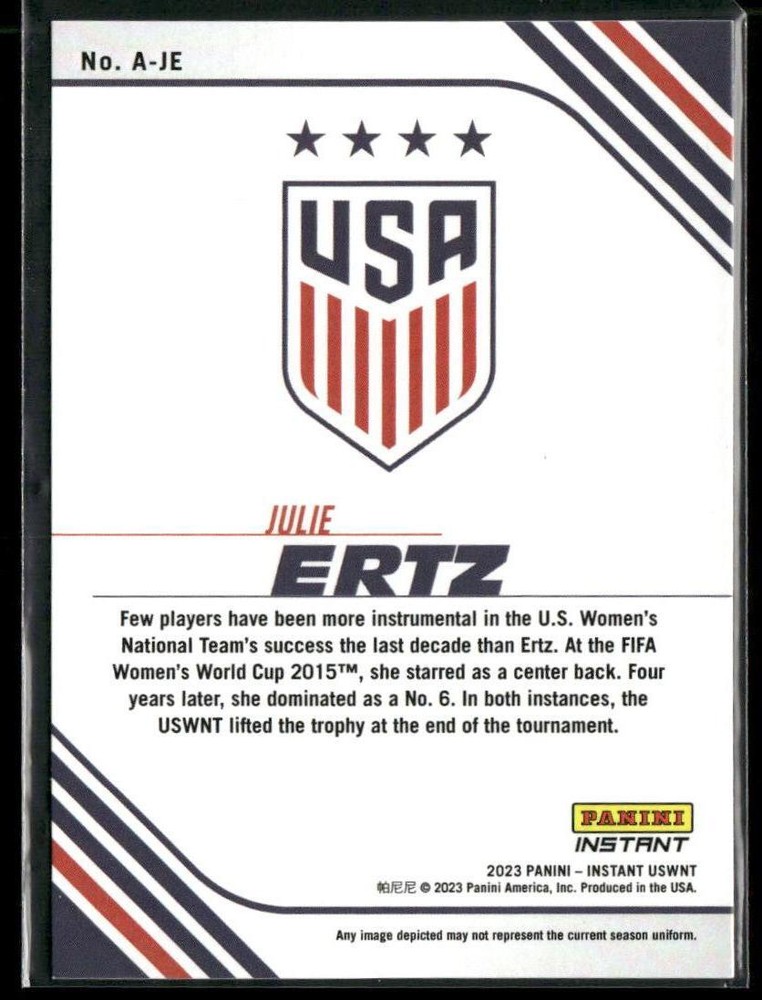 This is a nice example of a 2023 Panini Instant US Women's National Team - Action #A-JE Julie Ertz Other important information about this card: In 2023 Julie Ertz played for the USA. Please check out our other listings for more great cards.