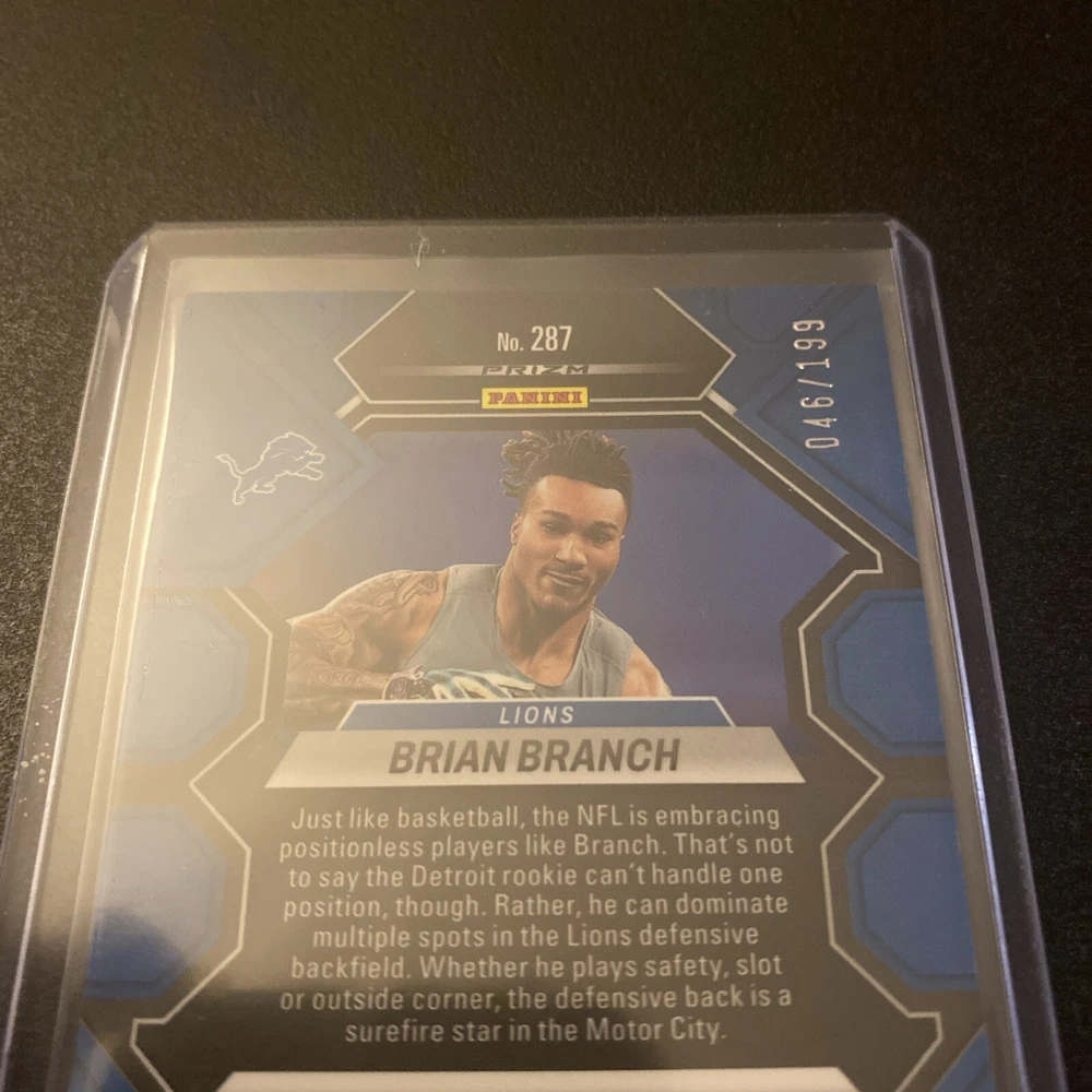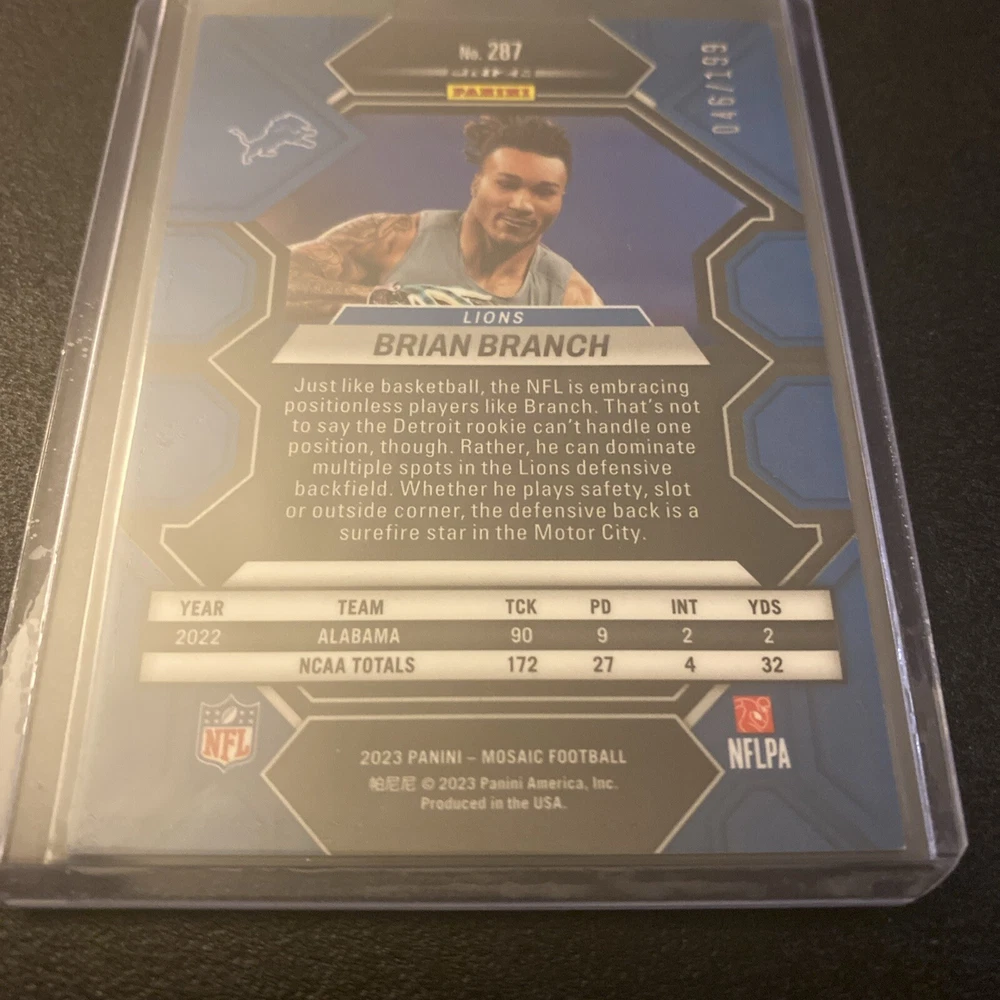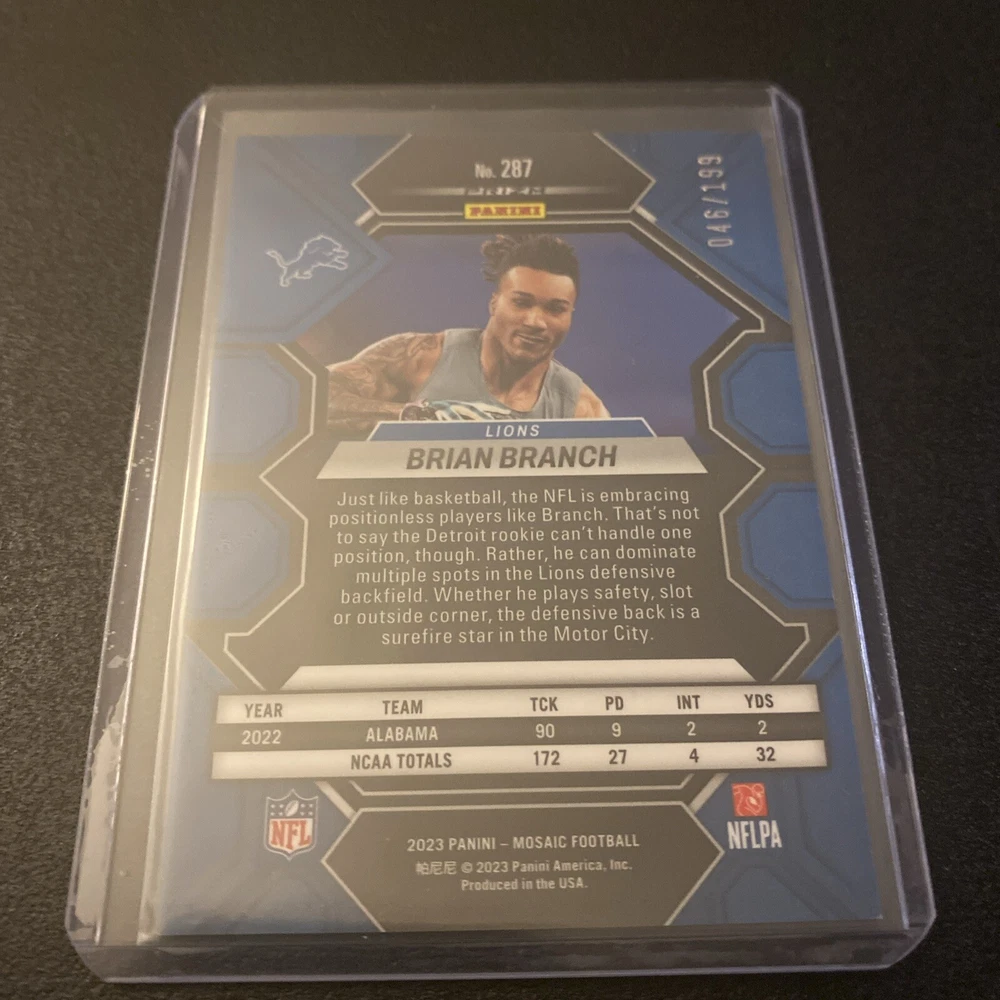 2023 Panini Mosaic Brian Branch /199 Orange Mosaic Prizm RC #287 Detroit Lions